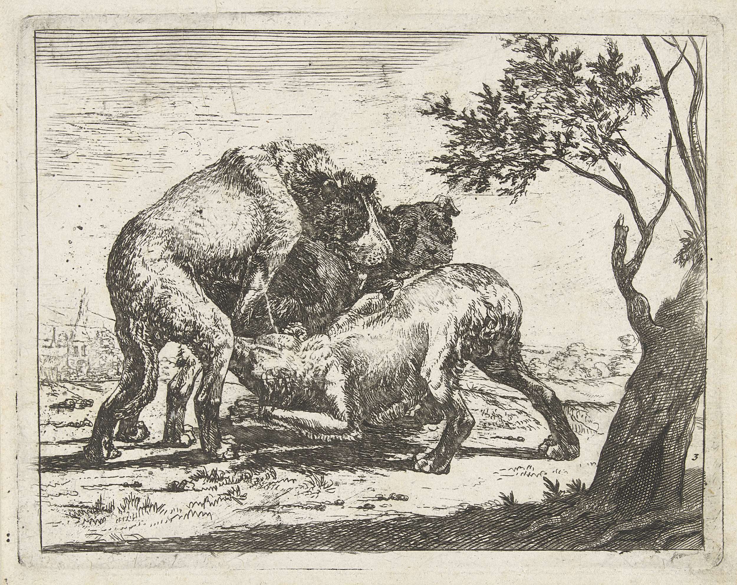 Twee vechtende honden