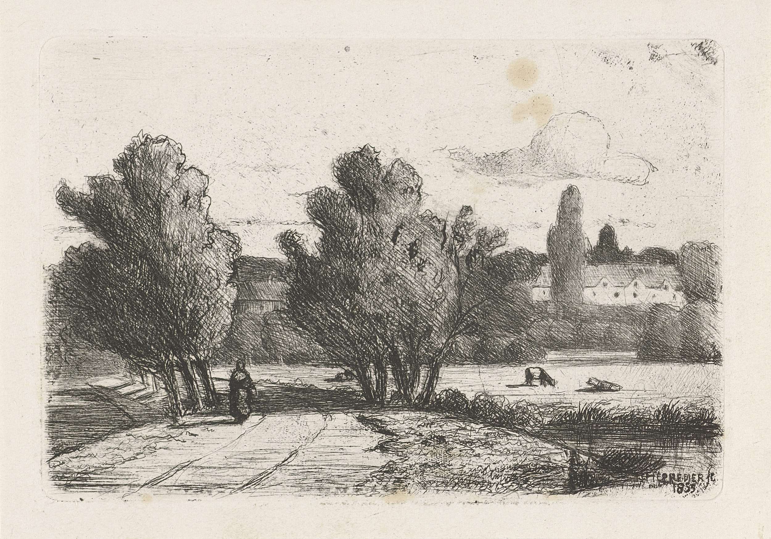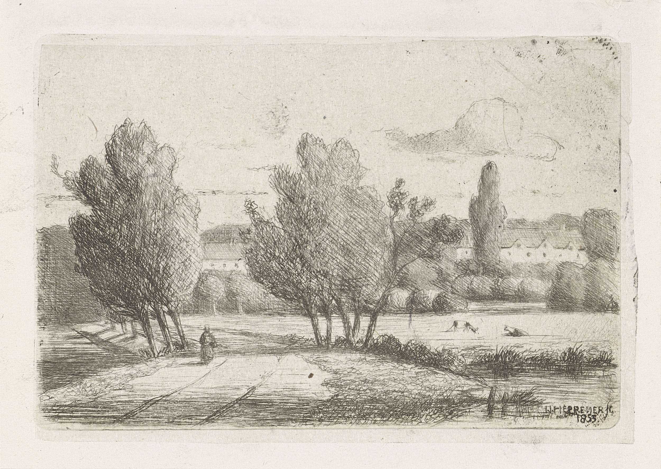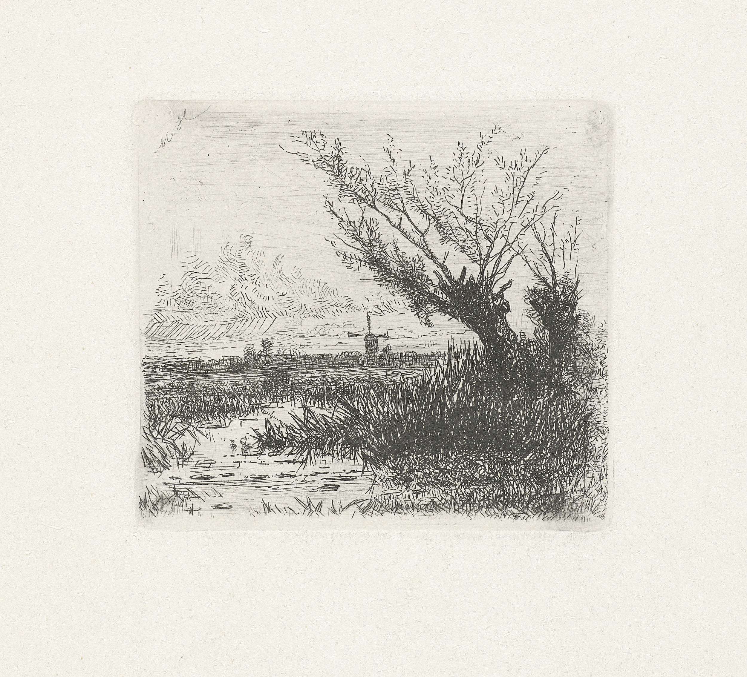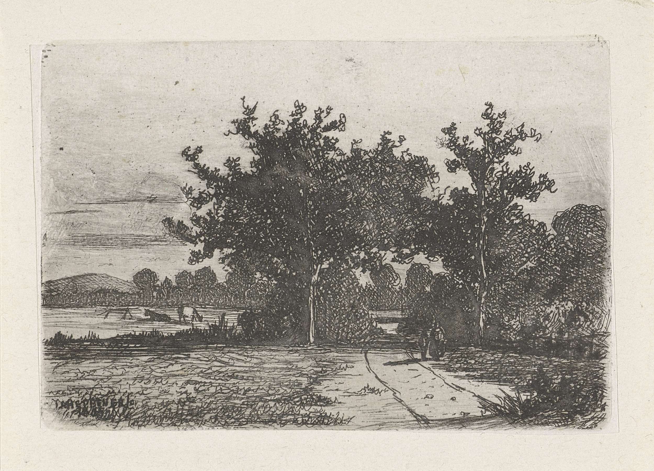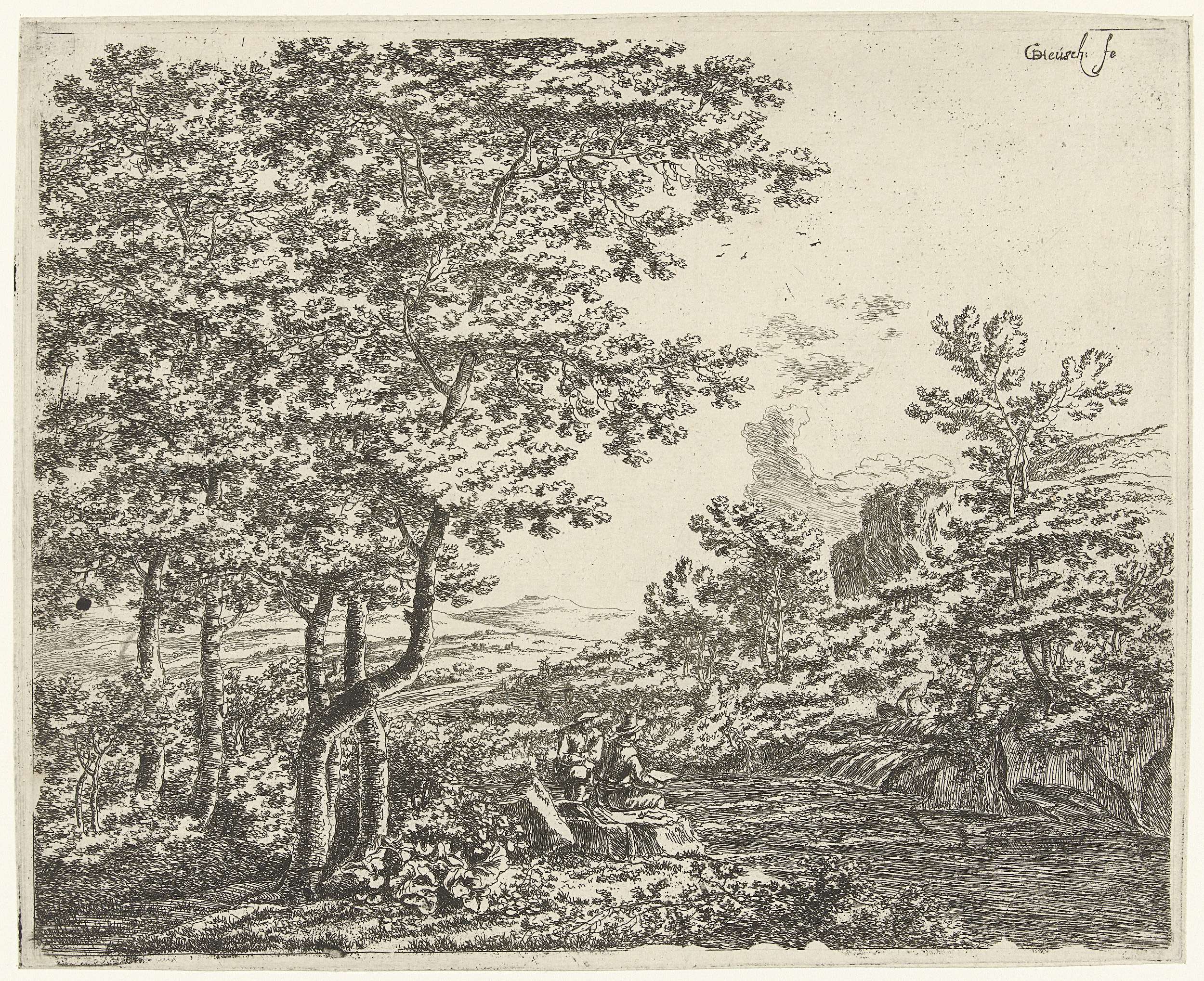 Landschap met een tekenaar