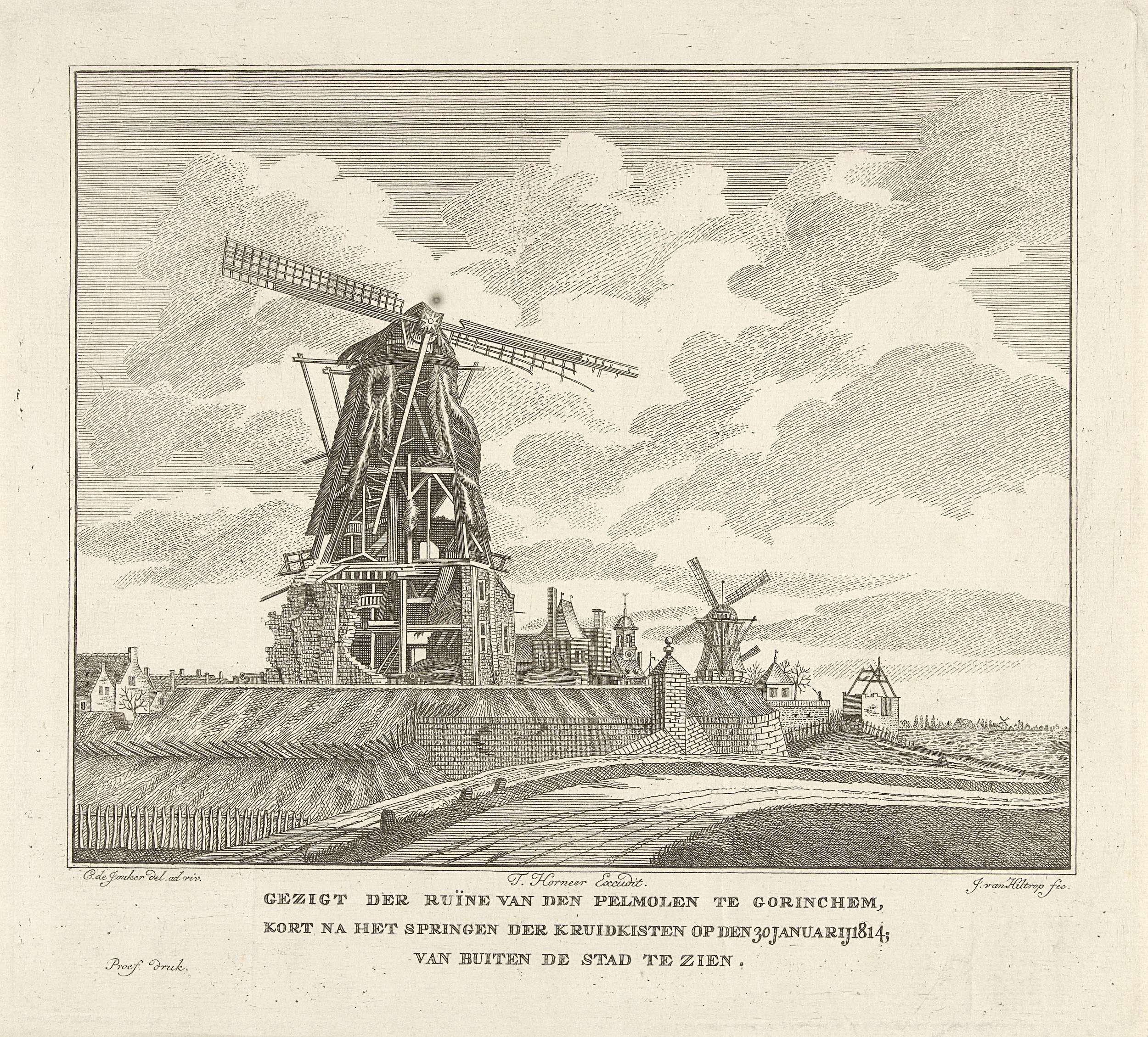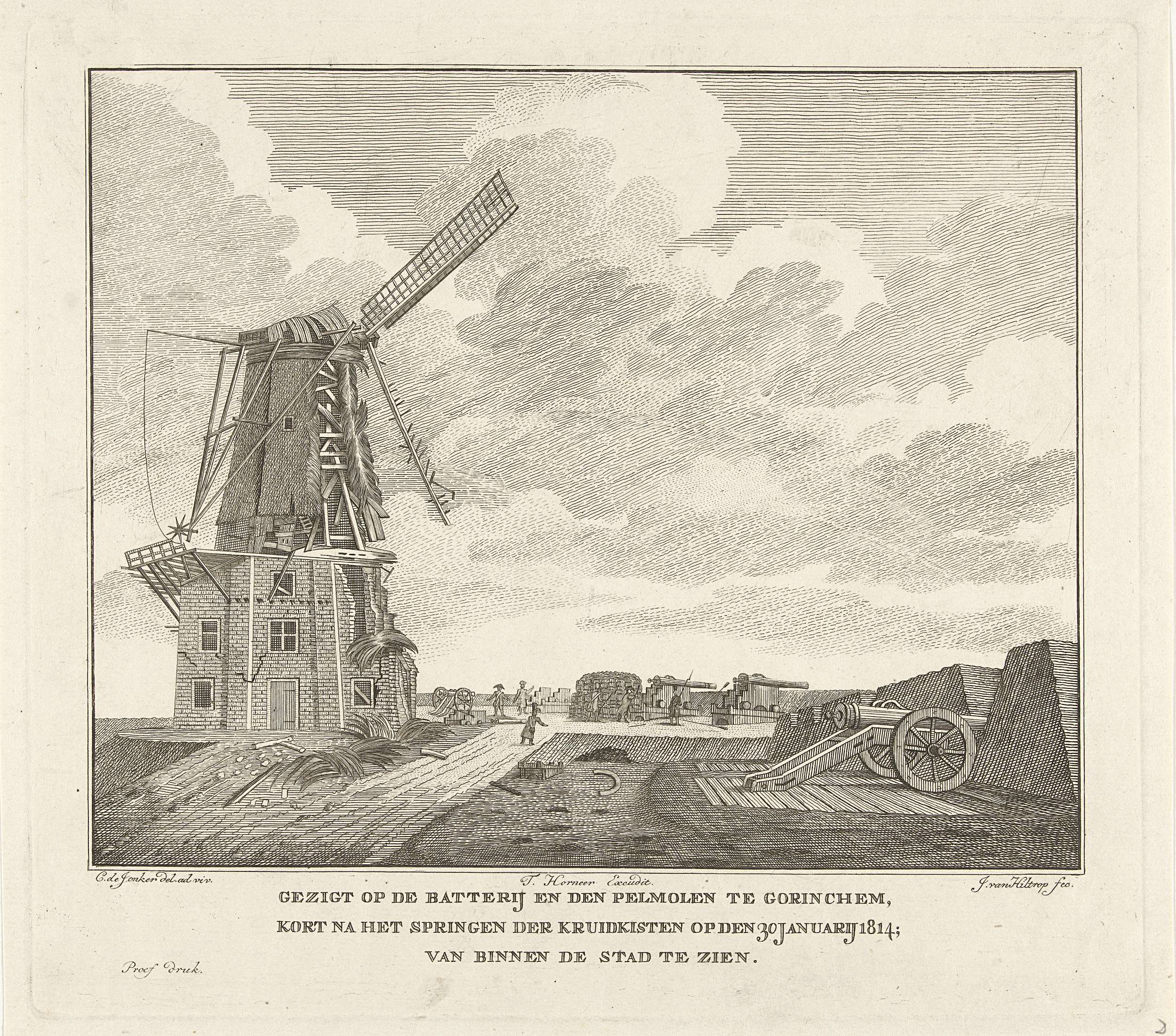 Ruïne van de pelmolen te Gorinchem bij kanonnen