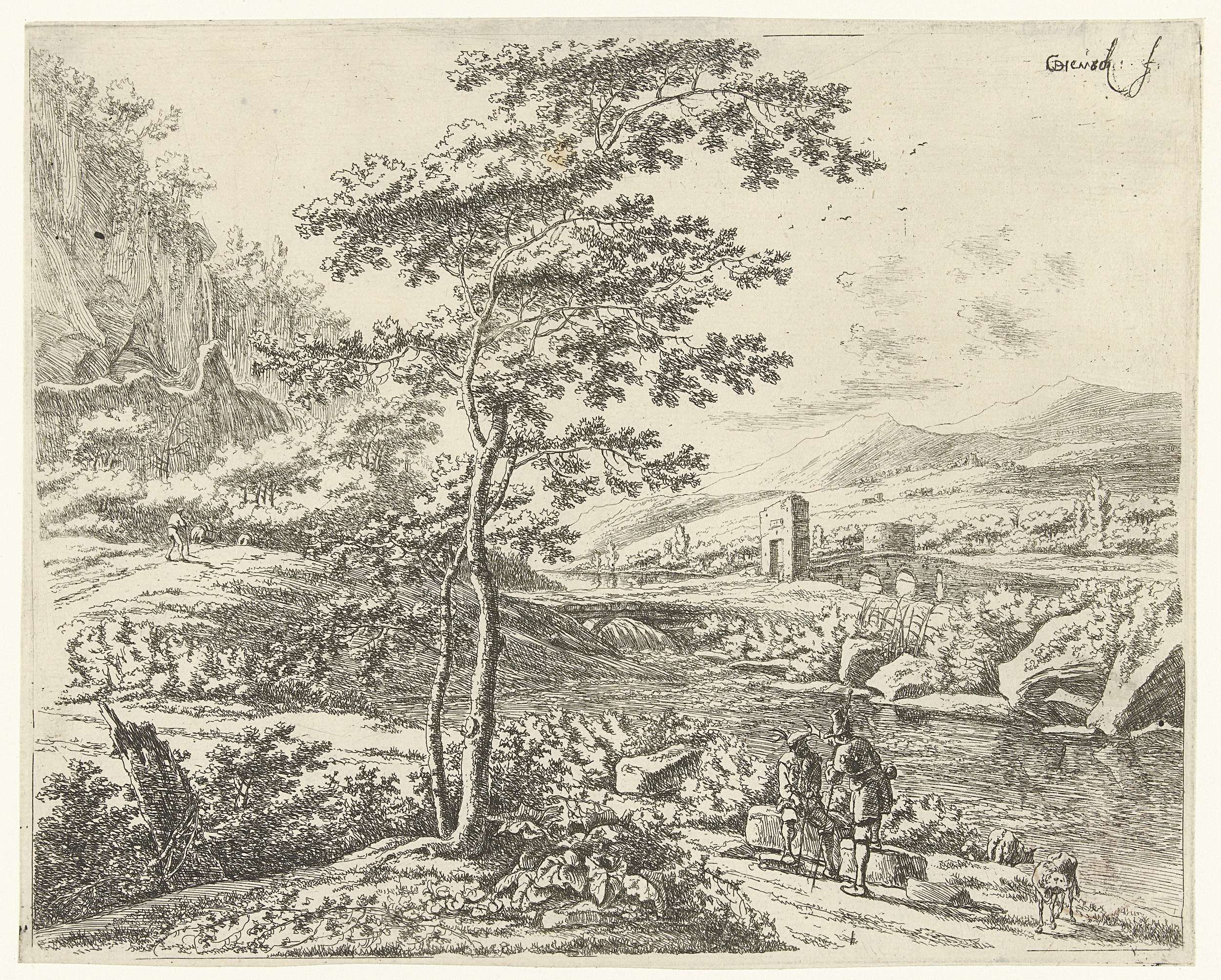 Landschap met een stenen brug