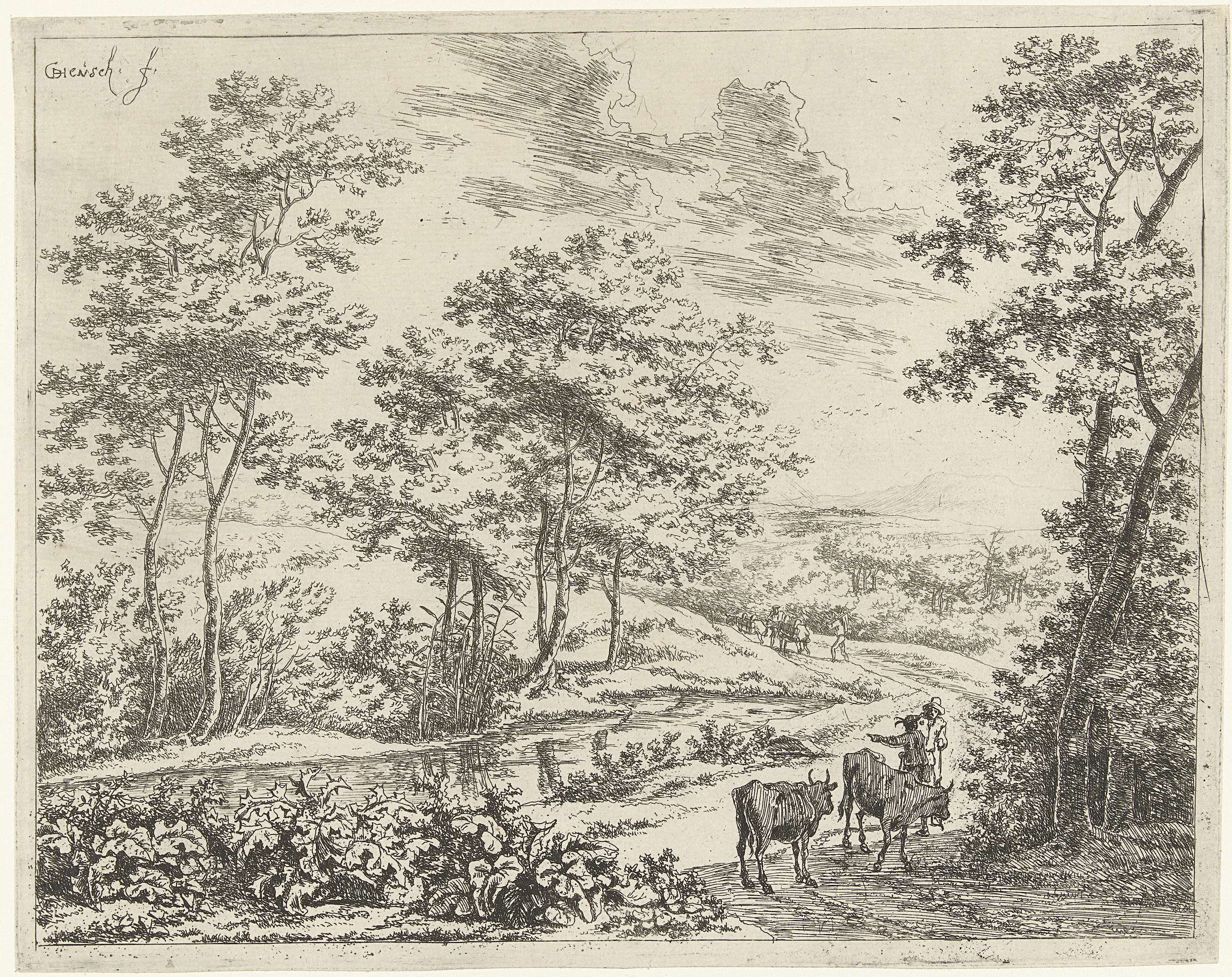 Landschap met twee ossen
