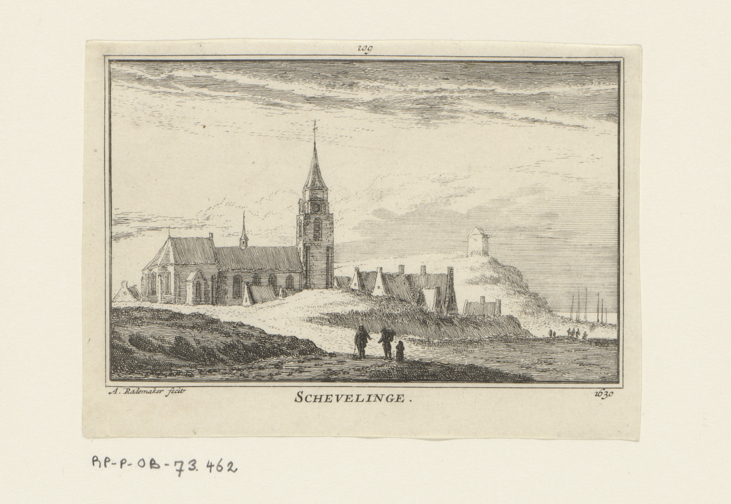 Gezicht op de kerk te Scheveningen, 1630