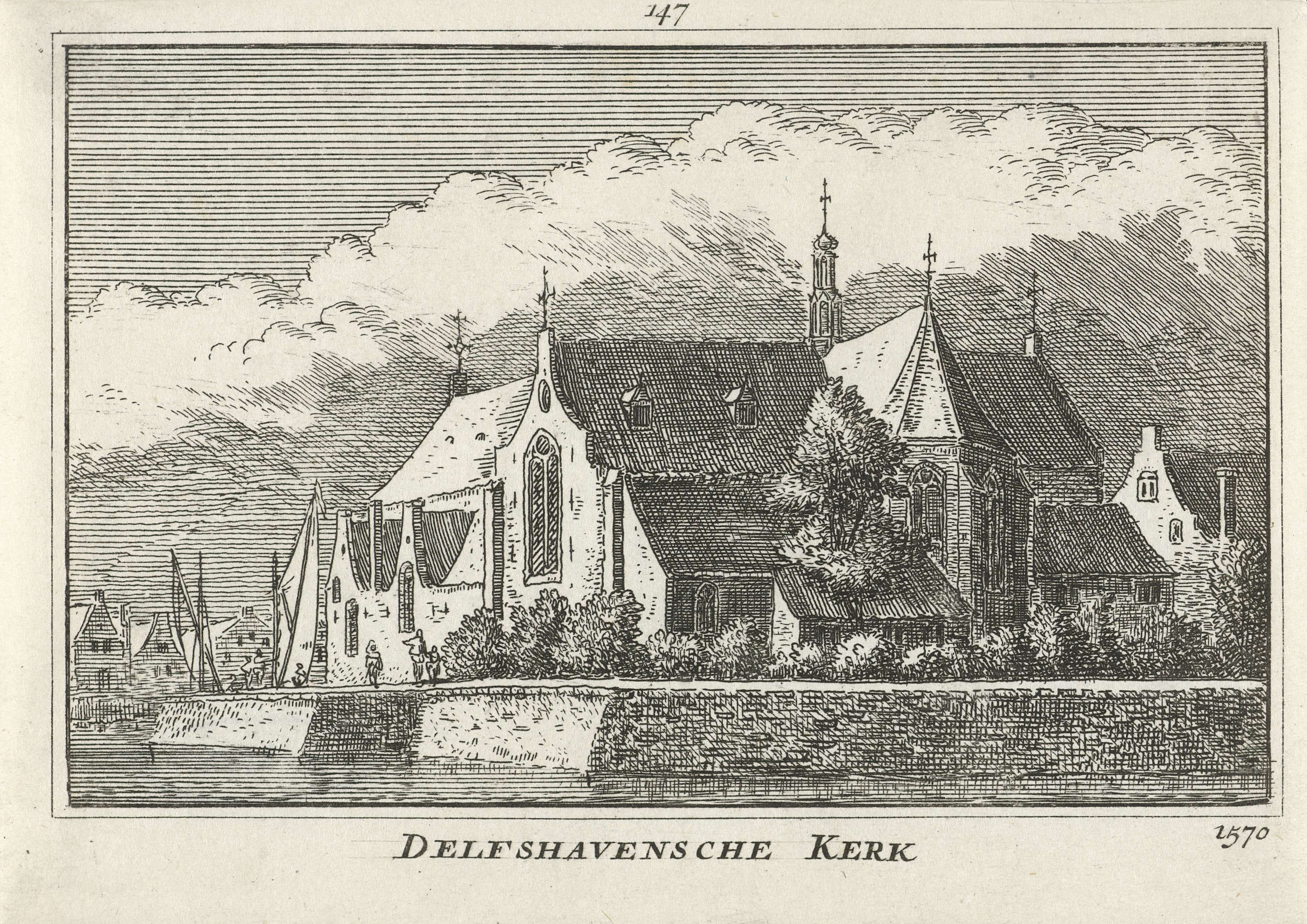 Gezicht op de Oude of Pelgrimvaderskerk te Delfshave...