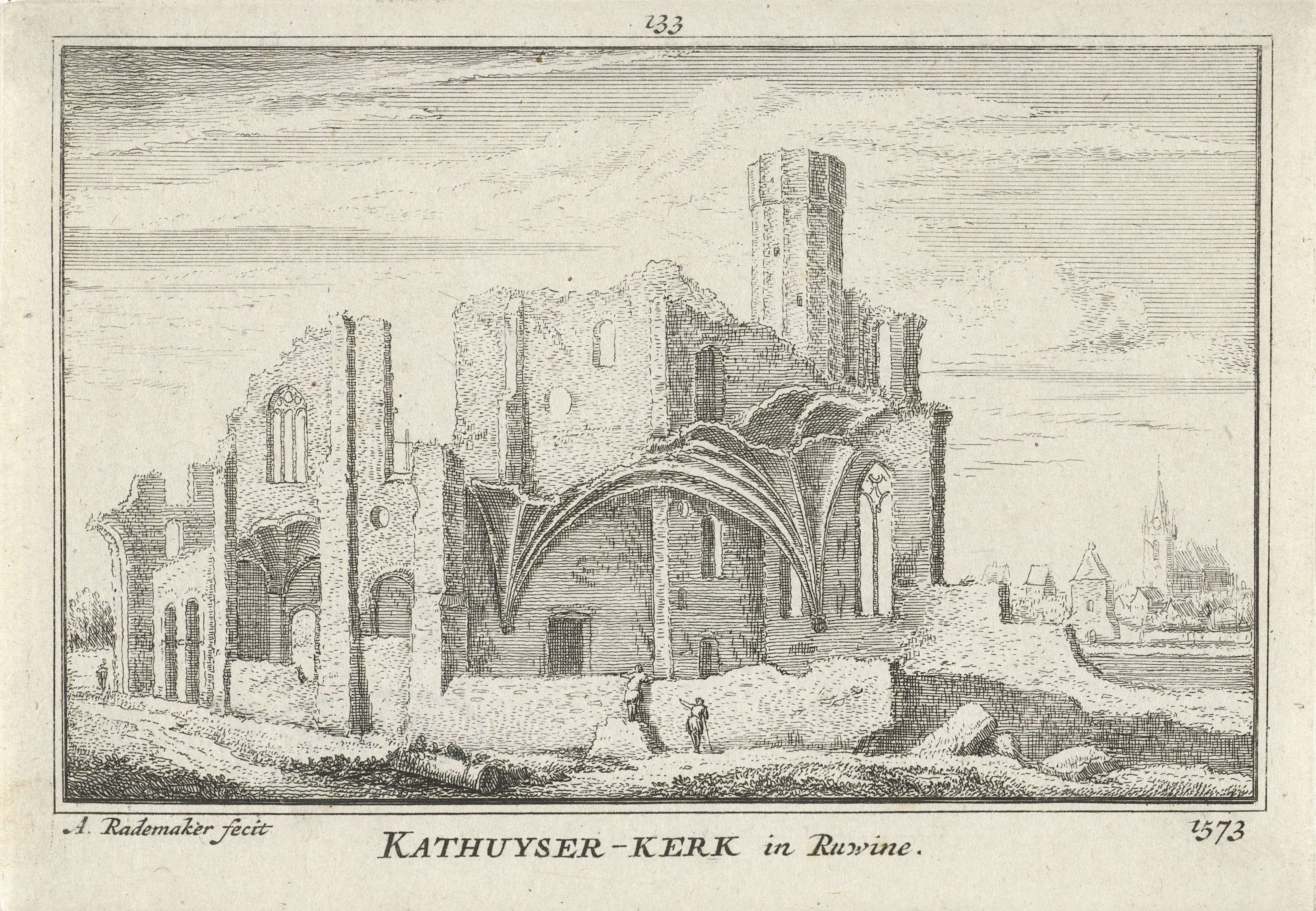 Gezicht op de ruïne van de kartuizerkerk bij Delft, ...