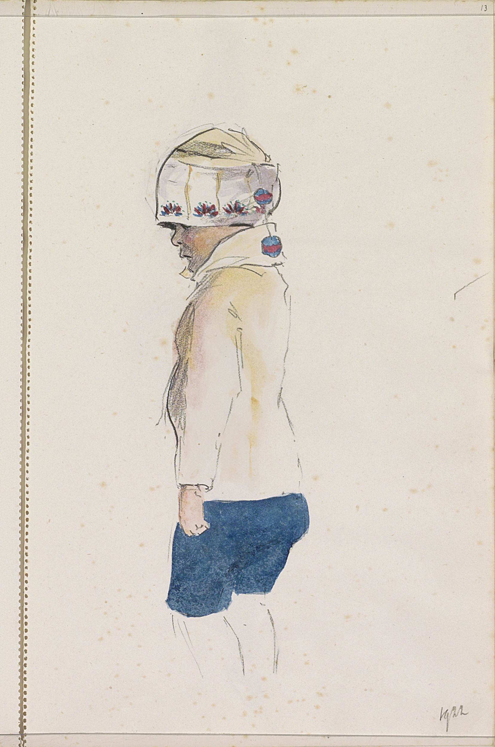 Staand kind met een geborduurde muts