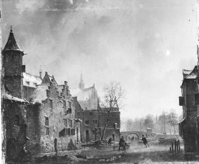 Een stadsgezicht bij winter