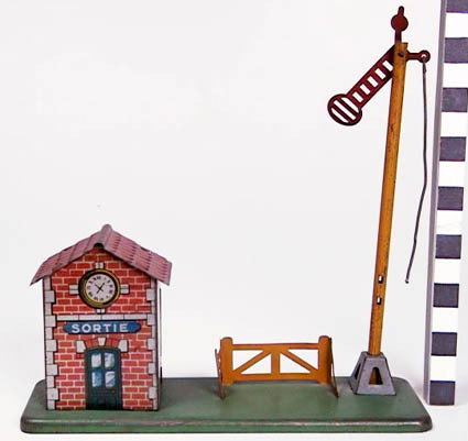 Spoorwegovergang met andreaskruis, spoorboom, boom e...