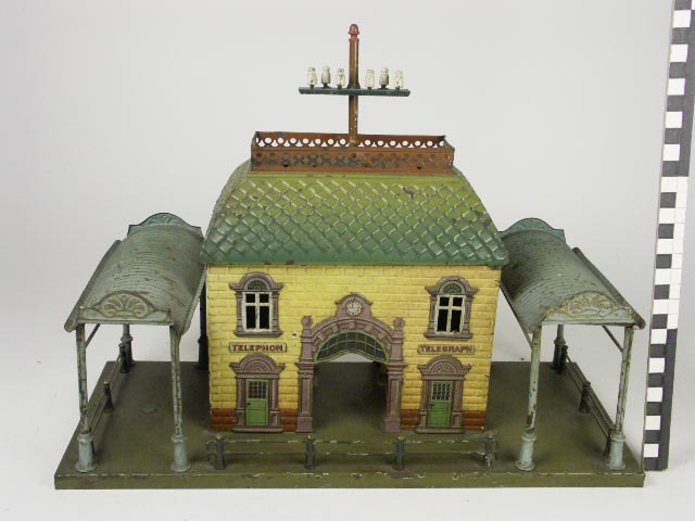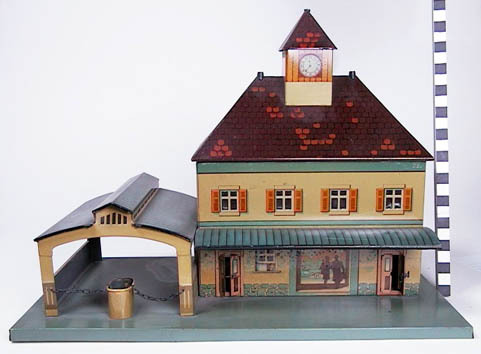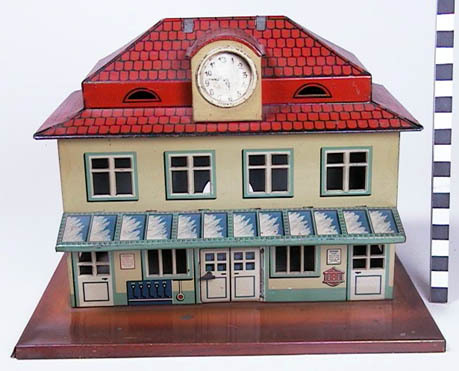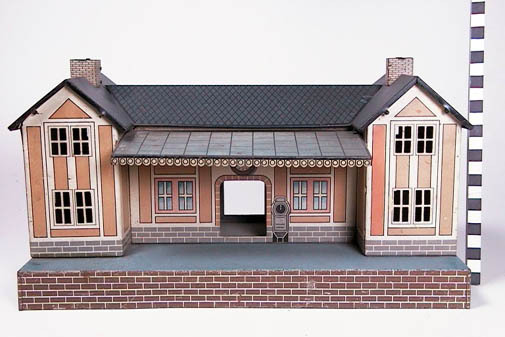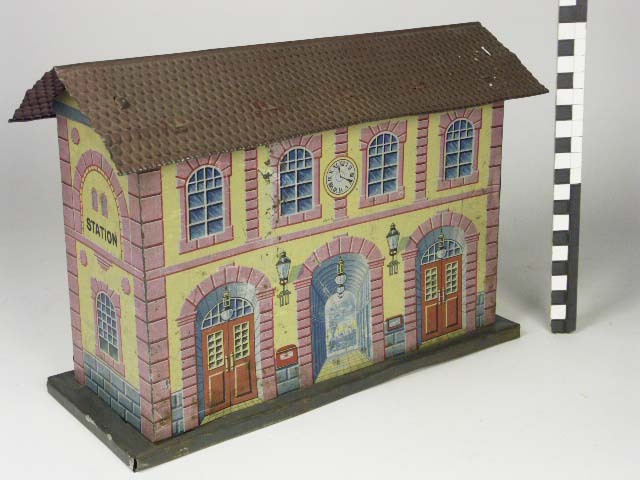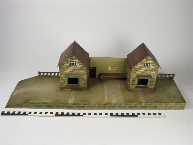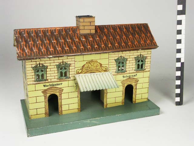Dorp bestaande uit huisjes, boten, figuren en dieren
