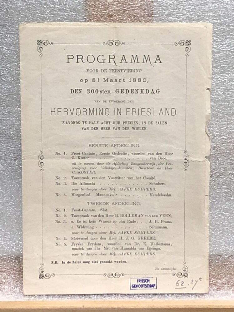 Programma voor de feestviering op 31 maart 1880 ter ...