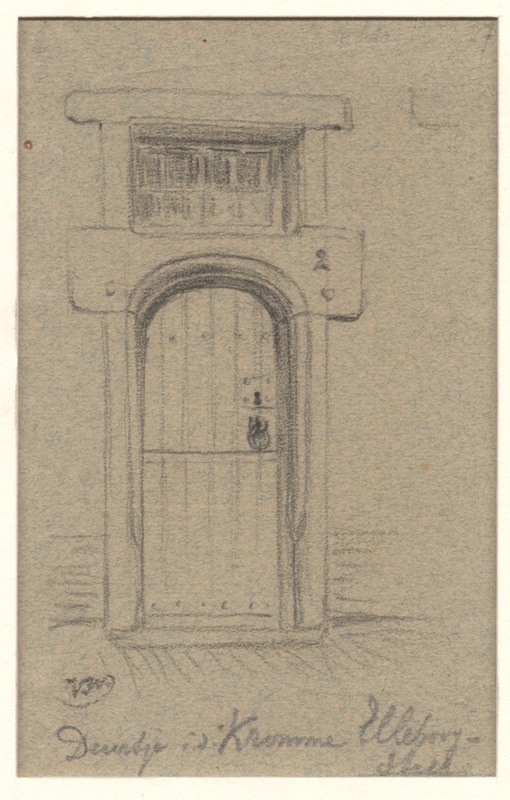 Gezicht op een deur in de Kromme Elleboogsteeg te Le...