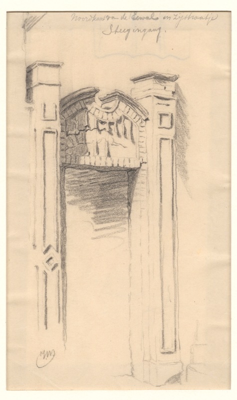 Gezicht op een poortje van een zijstraatje aan de no...