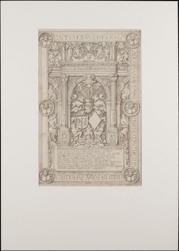 Gevelsteen van een huis met wapenborden aan de Druif...