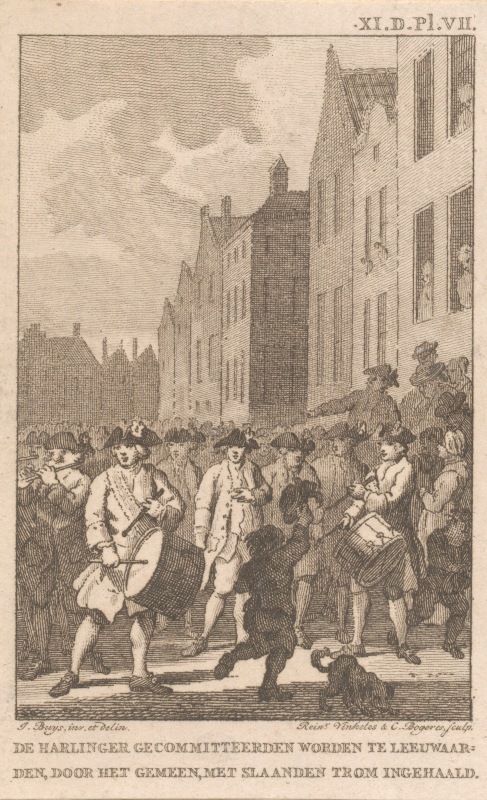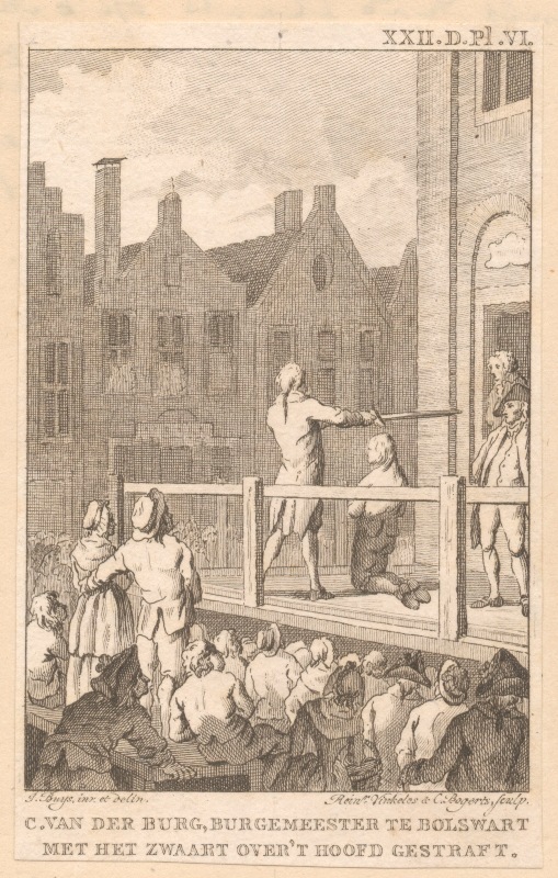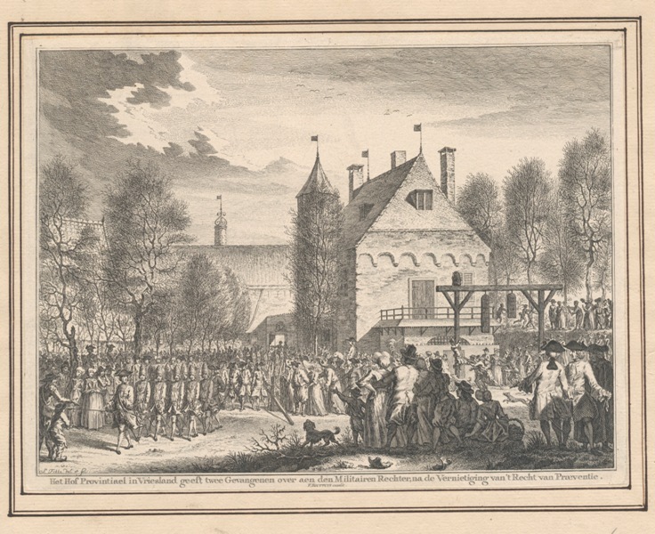 Historieprent van het schavot te Leeuwarden. C. van ...