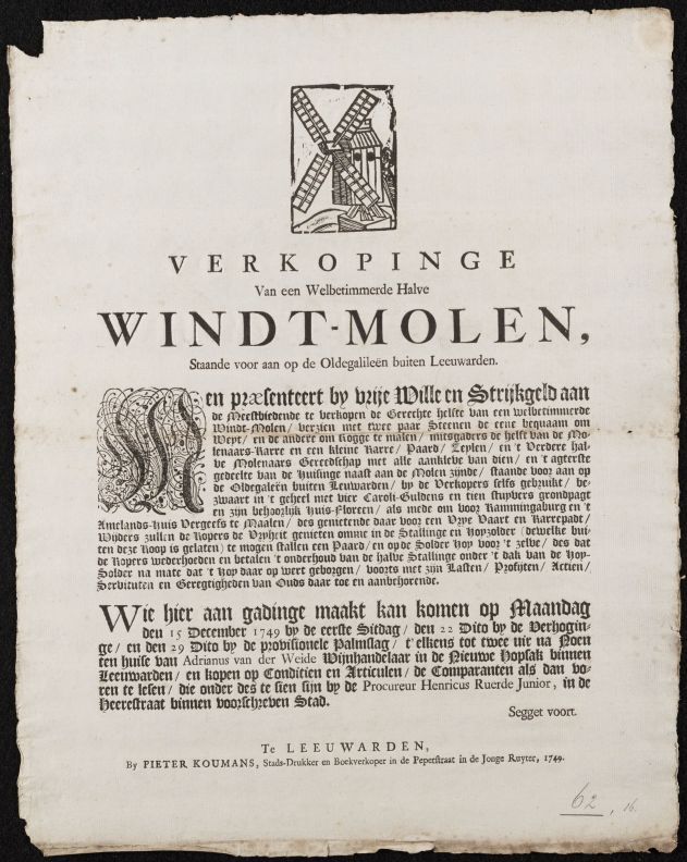 Verkopinge van een welbetimmerde halve Windt-Molen s...