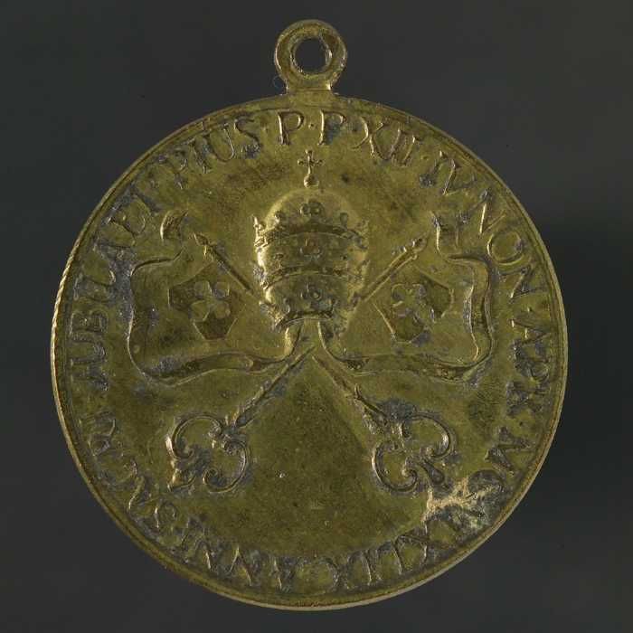 Sportmedaille met speerwerper en op keerzijde "Aange...