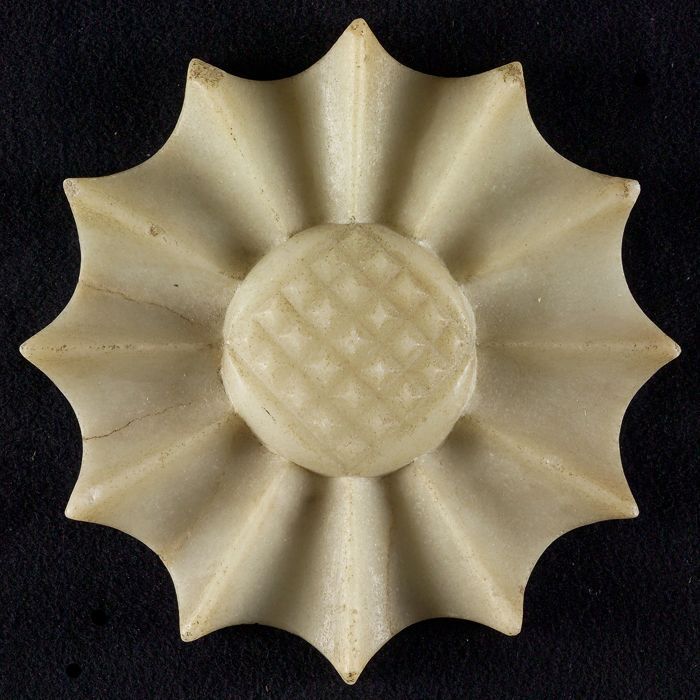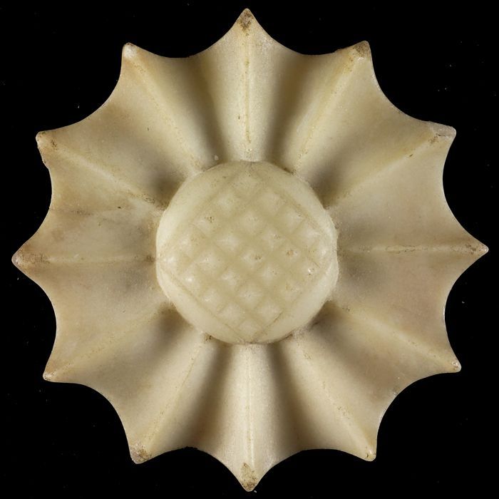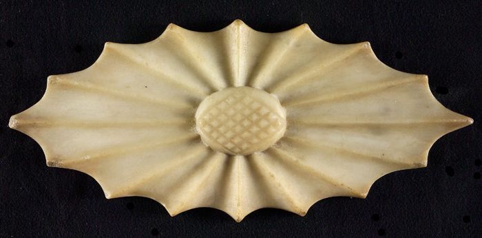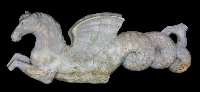 Deel van grijs/ wit reliëf, gevleugeld paard met vis...