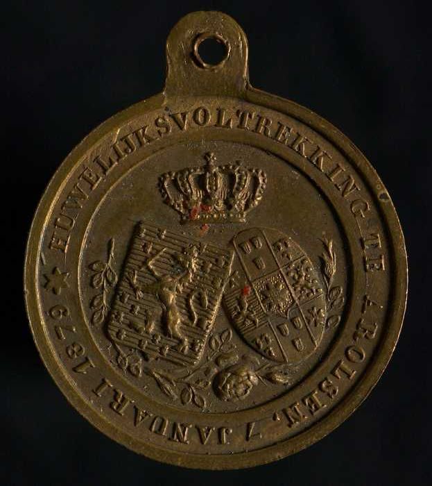Draagteken ter gelegenheid van het huwelijk van koni...