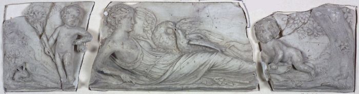 Deel van wit rechthoekig reliëf, bok met vijf putti
