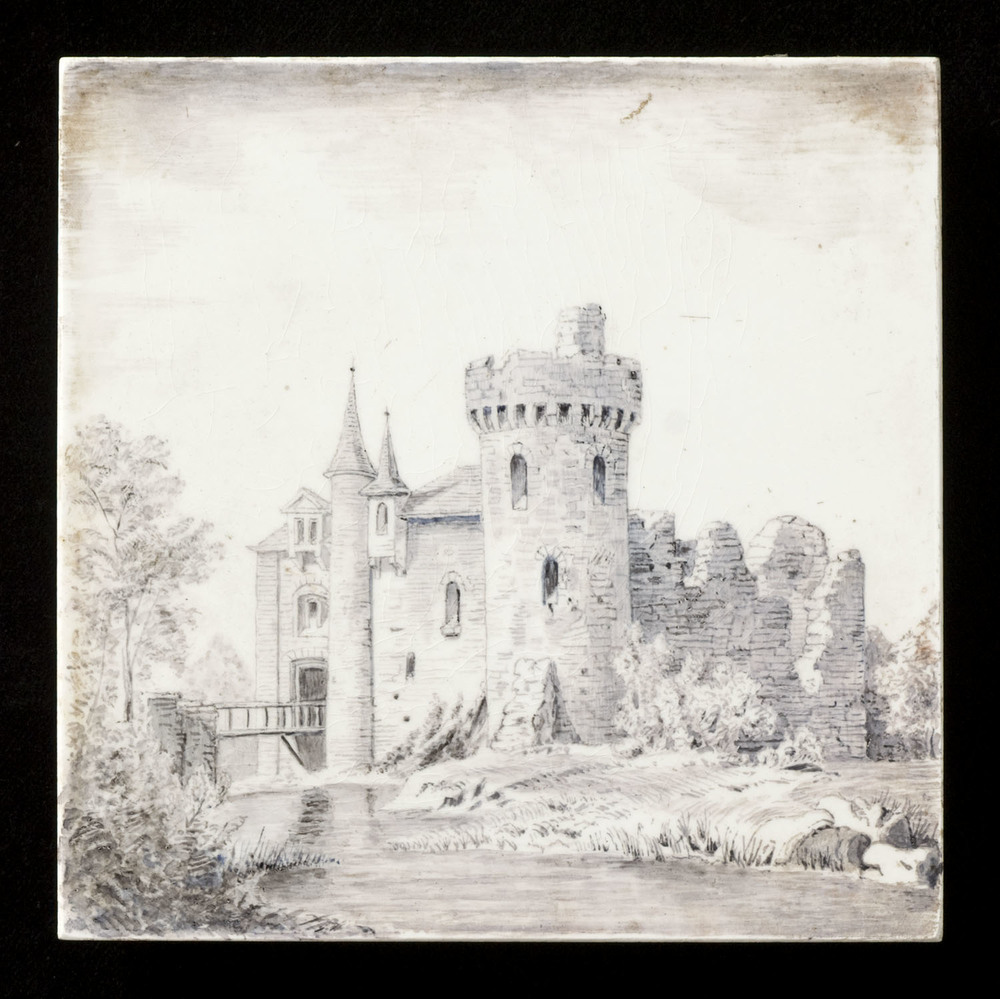 tegel van keramiek met tinglazuur, voorstellende: ru...