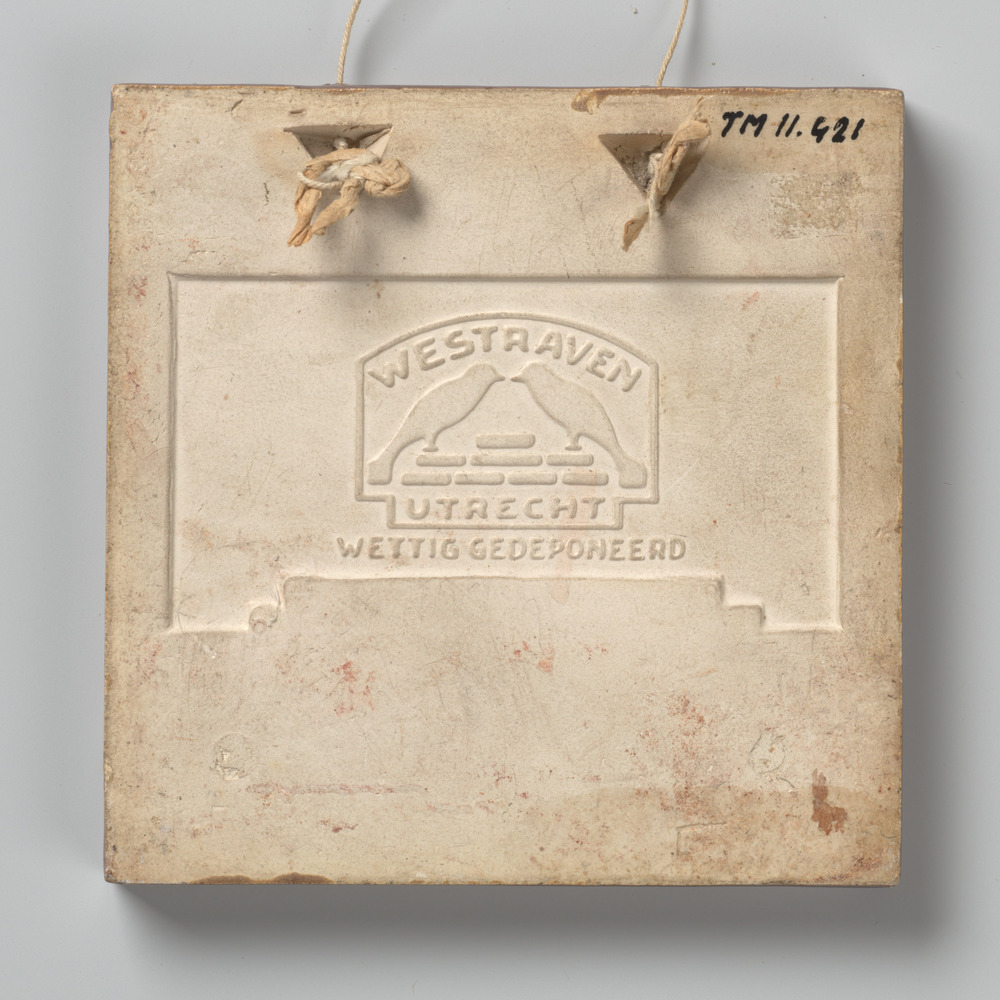 tegel van keramiek met tinglazuur, voorstellende: De...