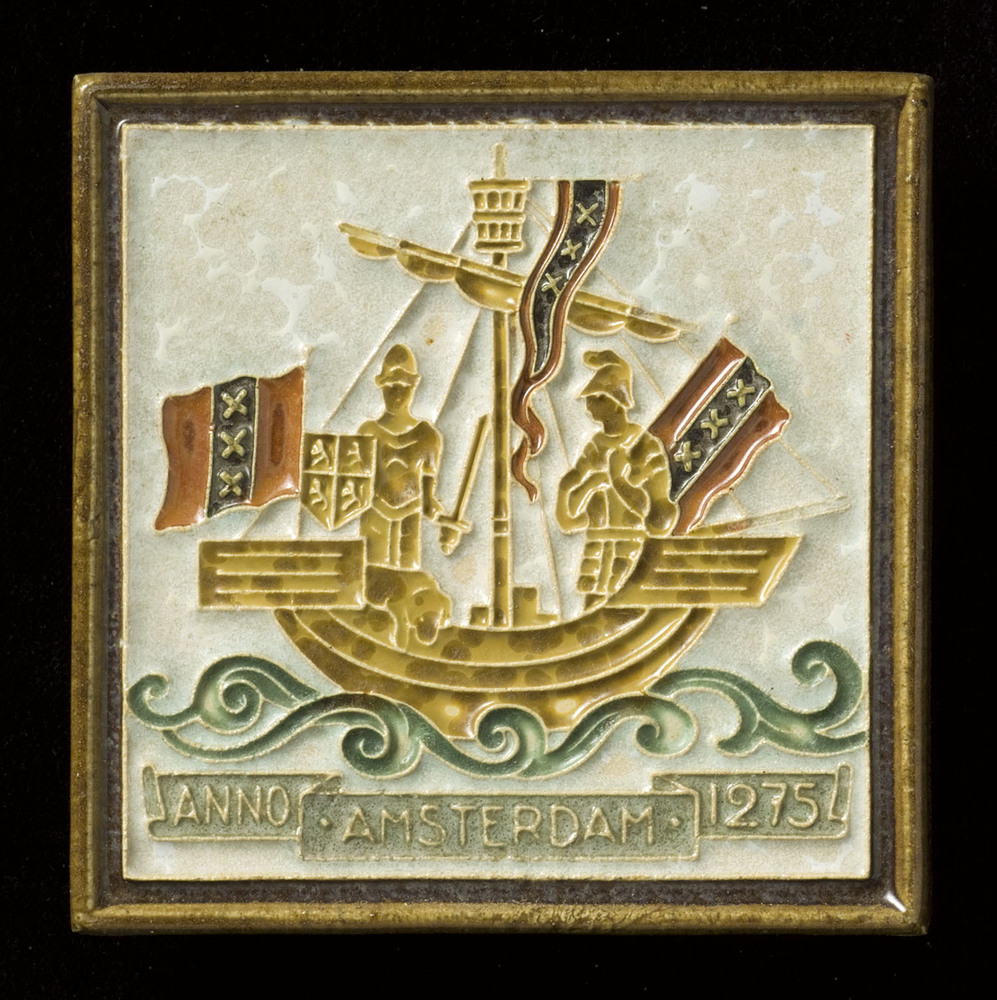 Tegel in cloisonné-techniek, voorstellende wapen Maa...