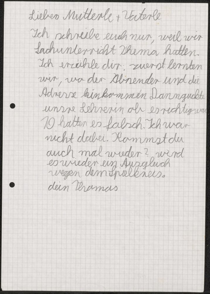 Brief van Thomas (kleinkind) aan Mutterle (Ella) en ...