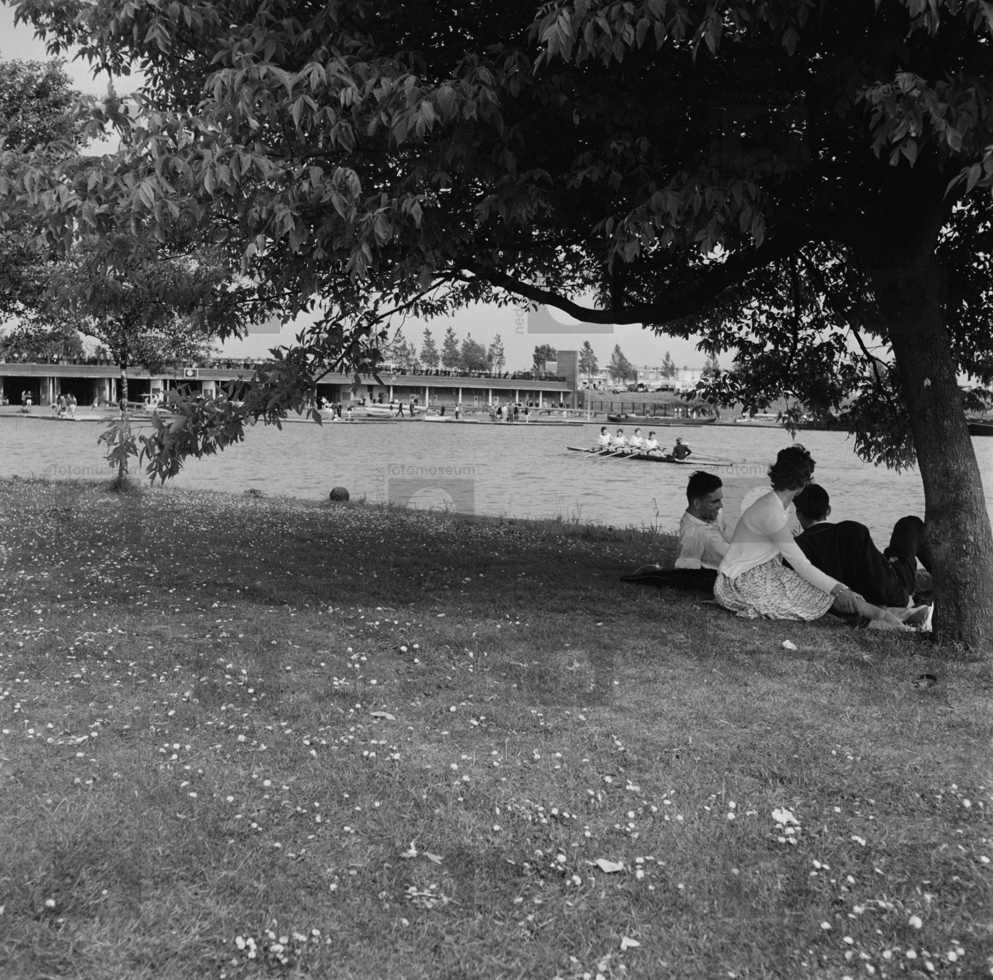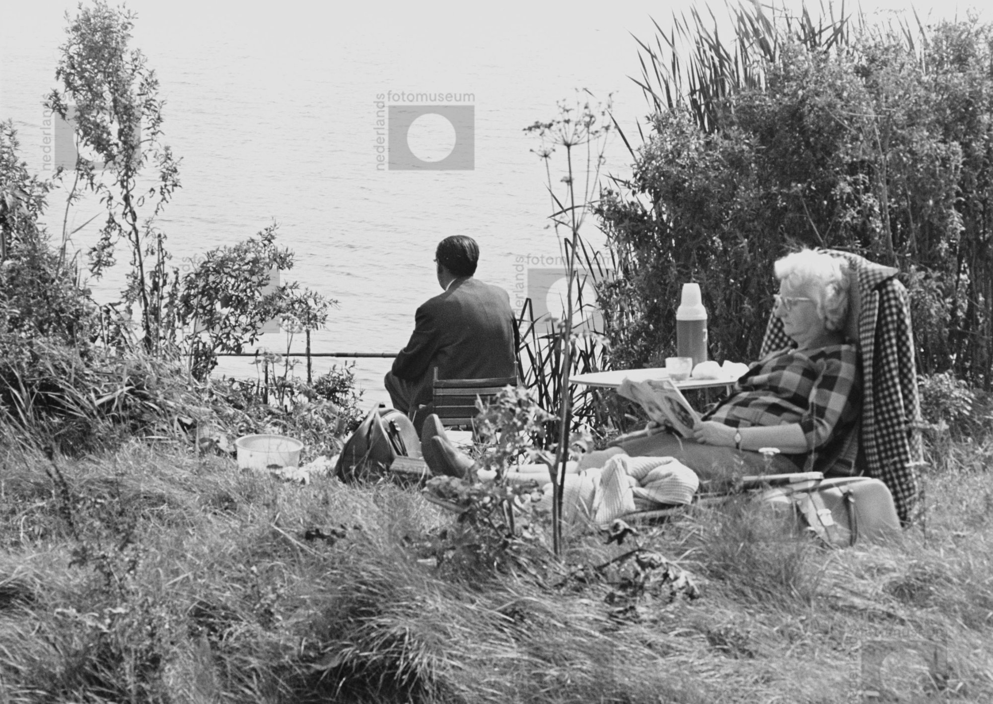 Amsterdam. Nieuwe Meer. Mensen langs de waterkant, v...