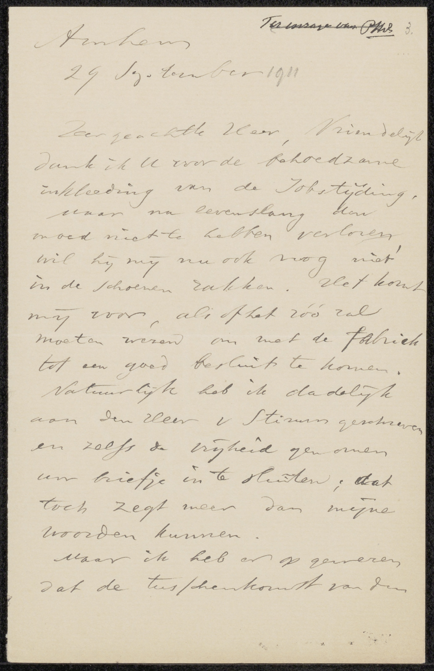 Brief aan G.M.C. Hooft, secretaris van de commissie ...