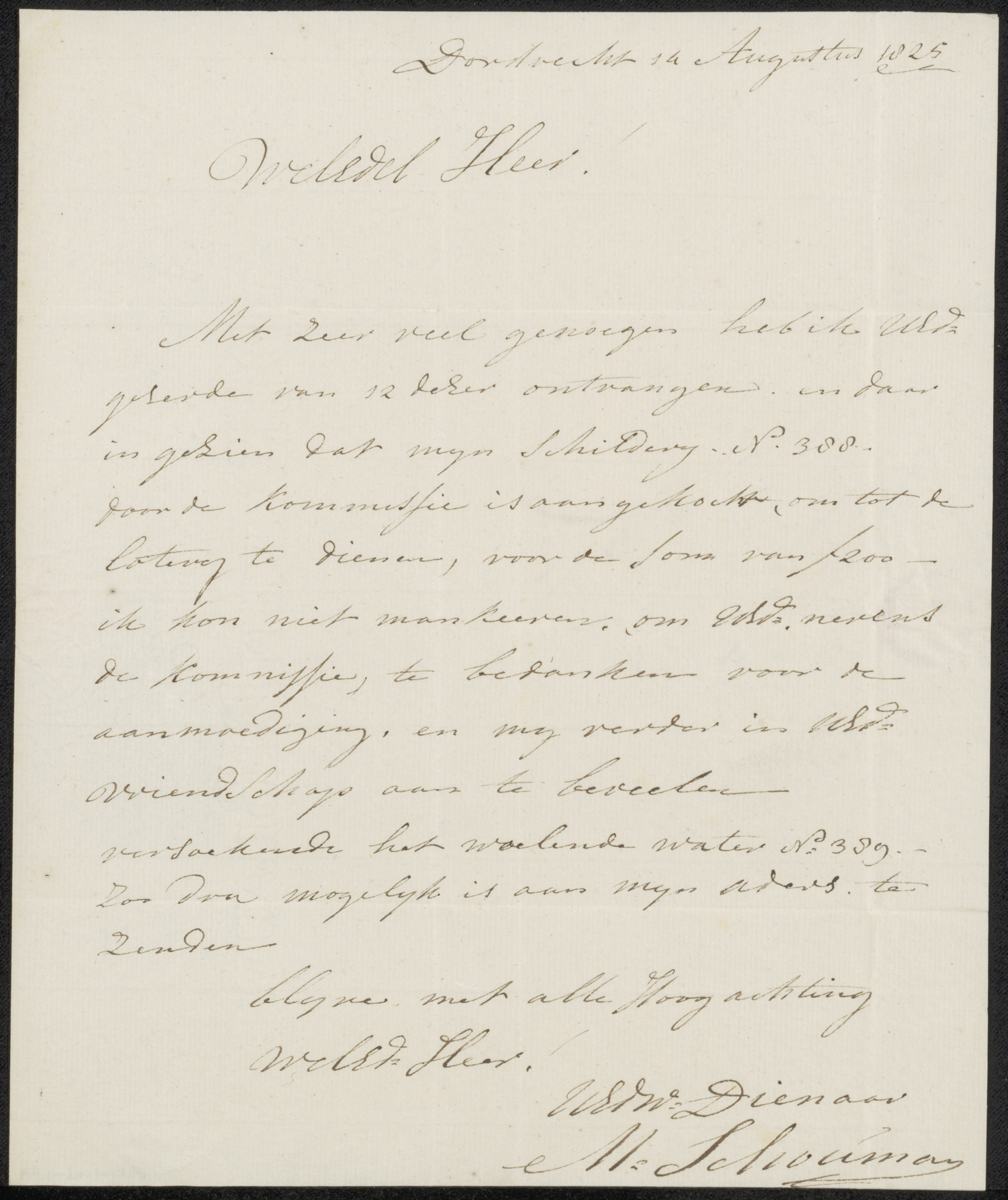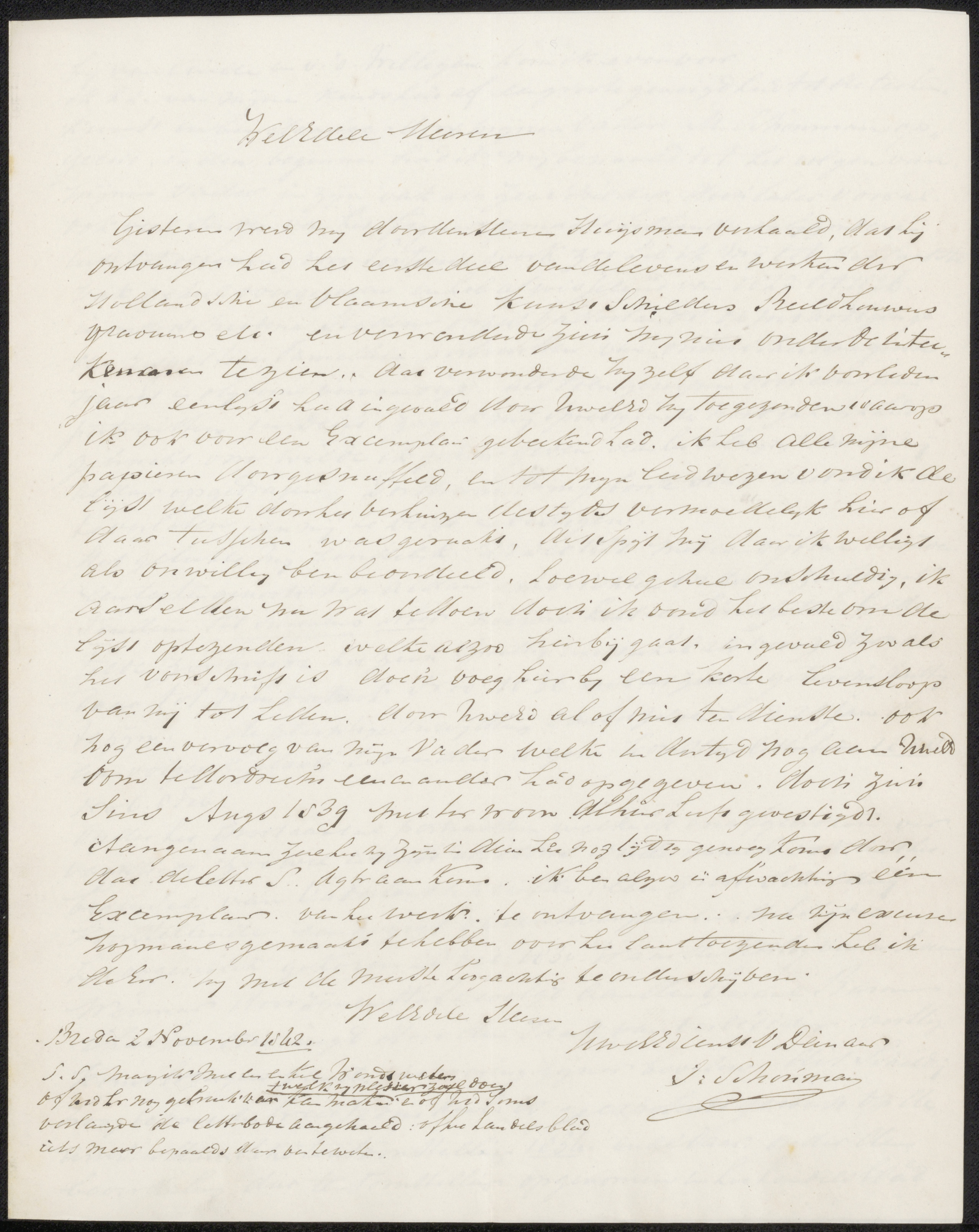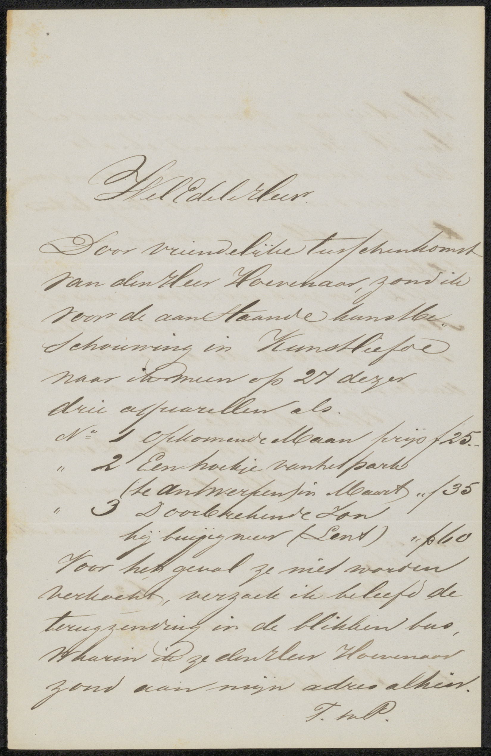 Brief aan het bestuur van het Genootschap Kunstliefde