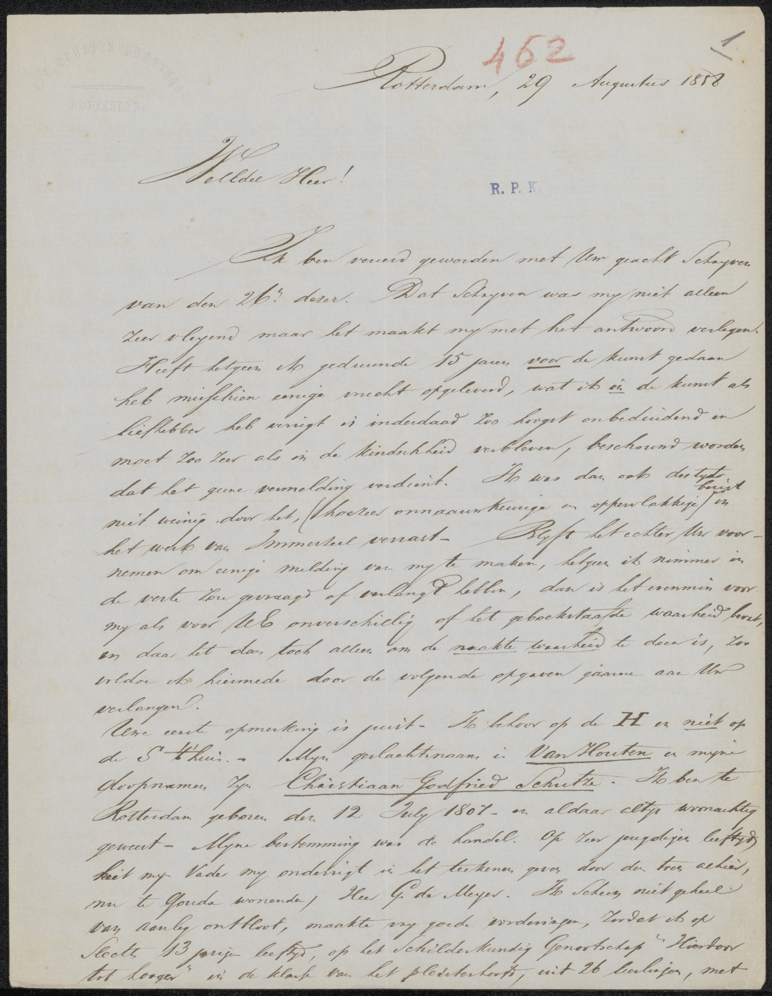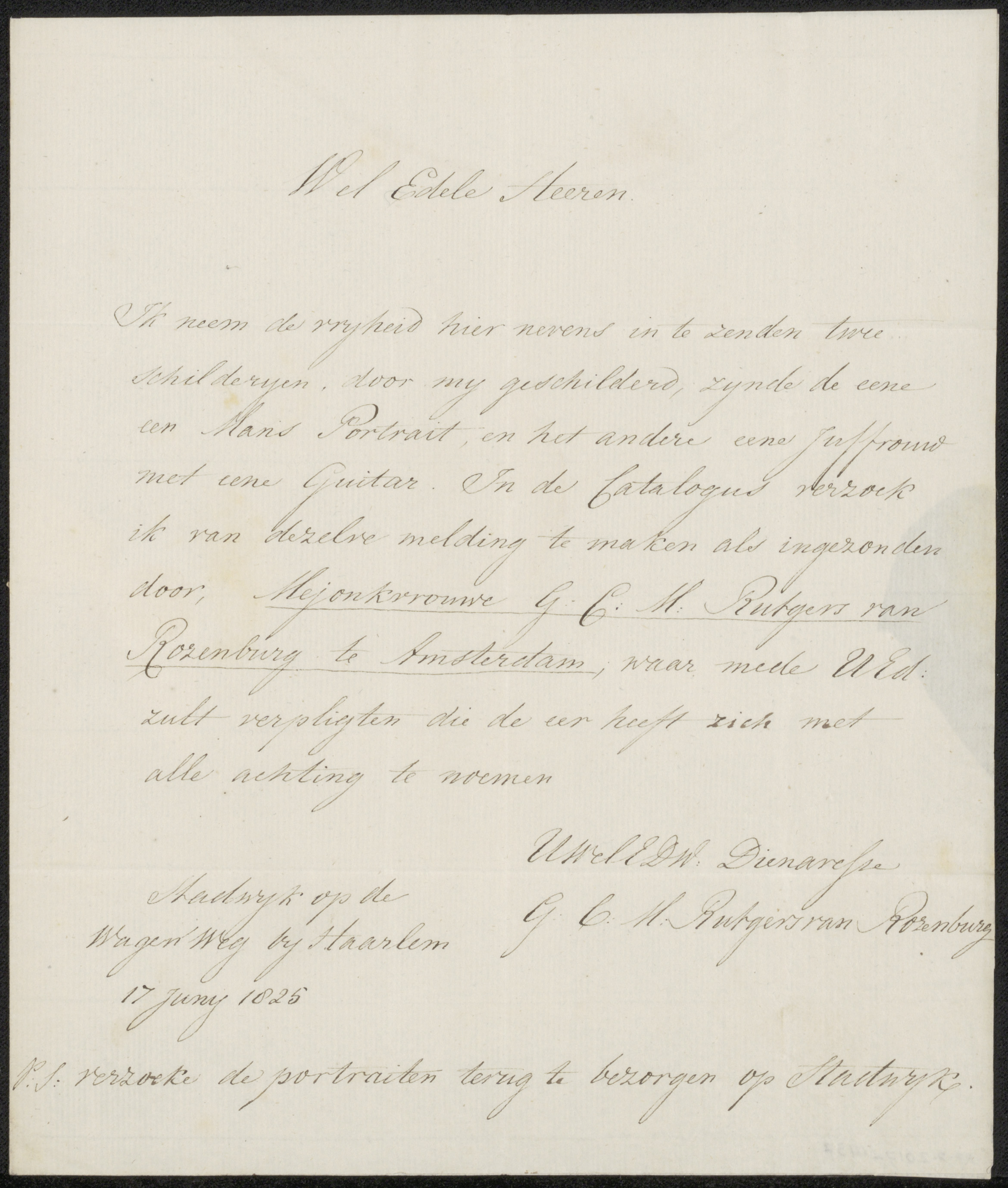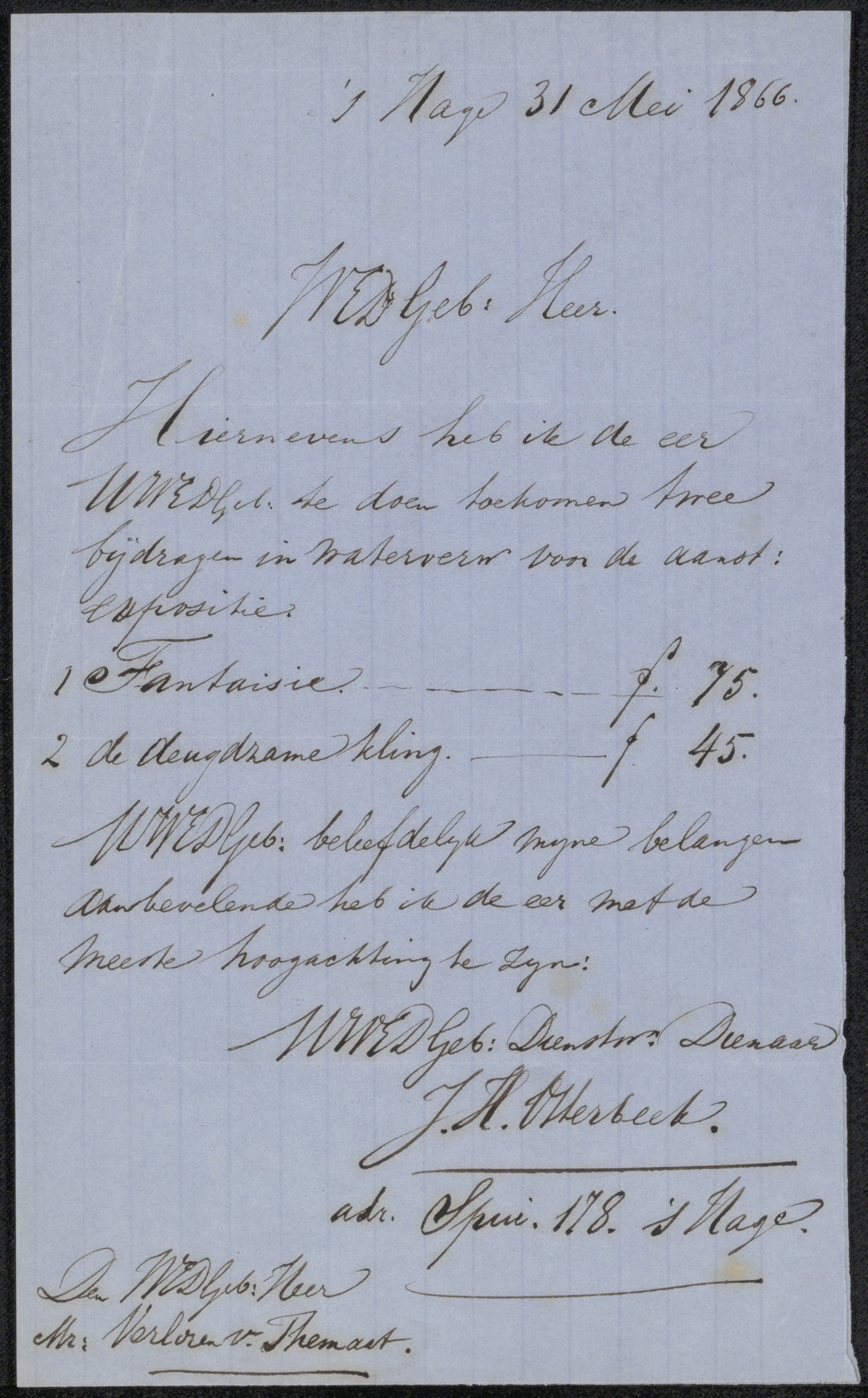 Brief aan het bestuur van het Genootschap Kunstliefde