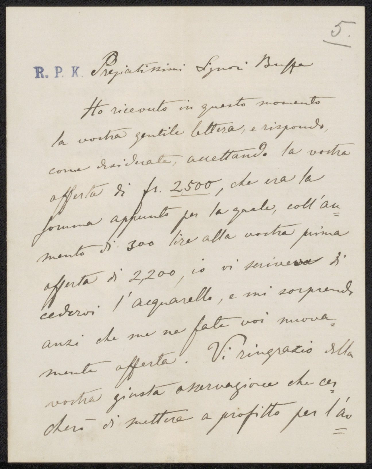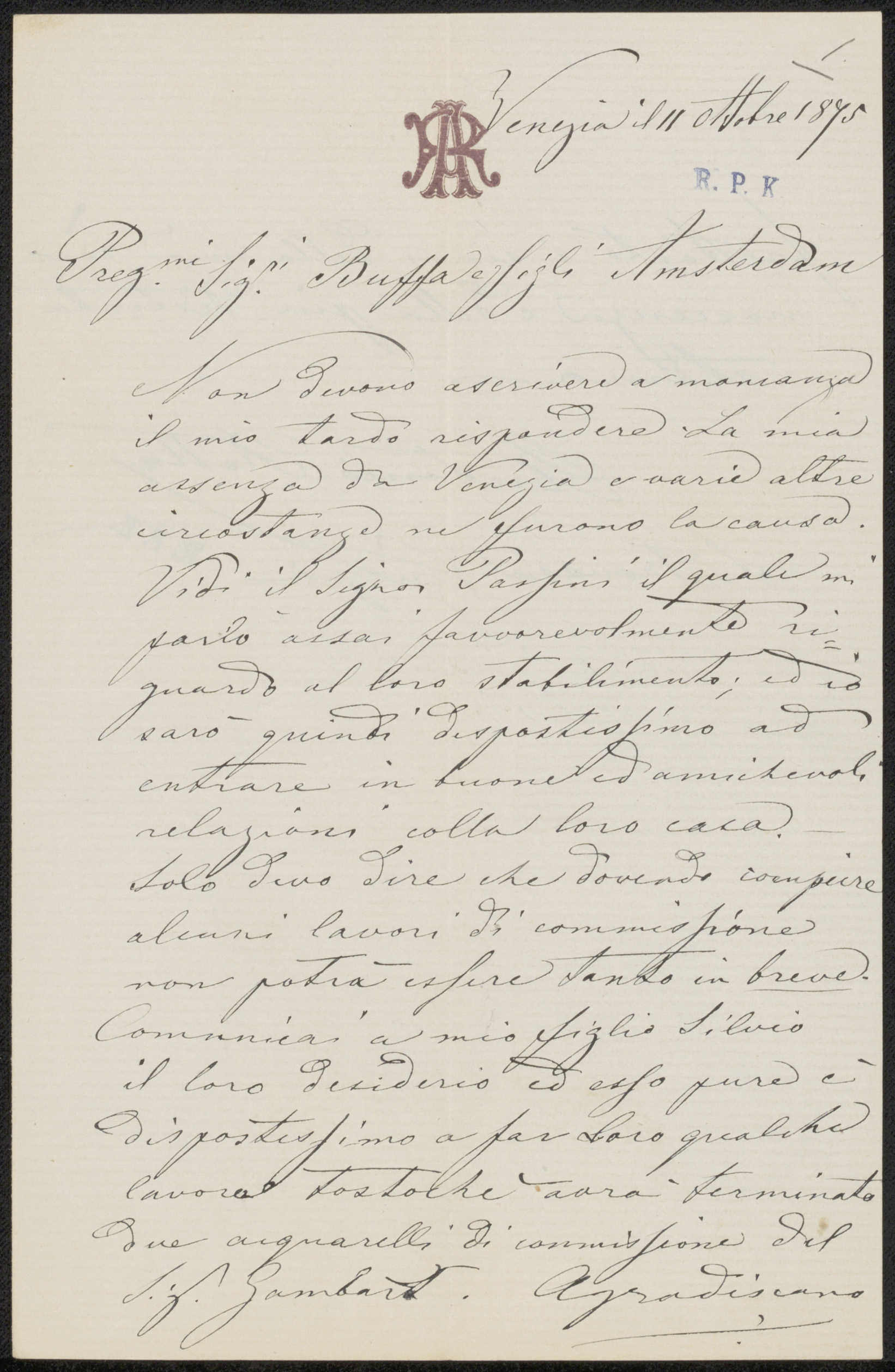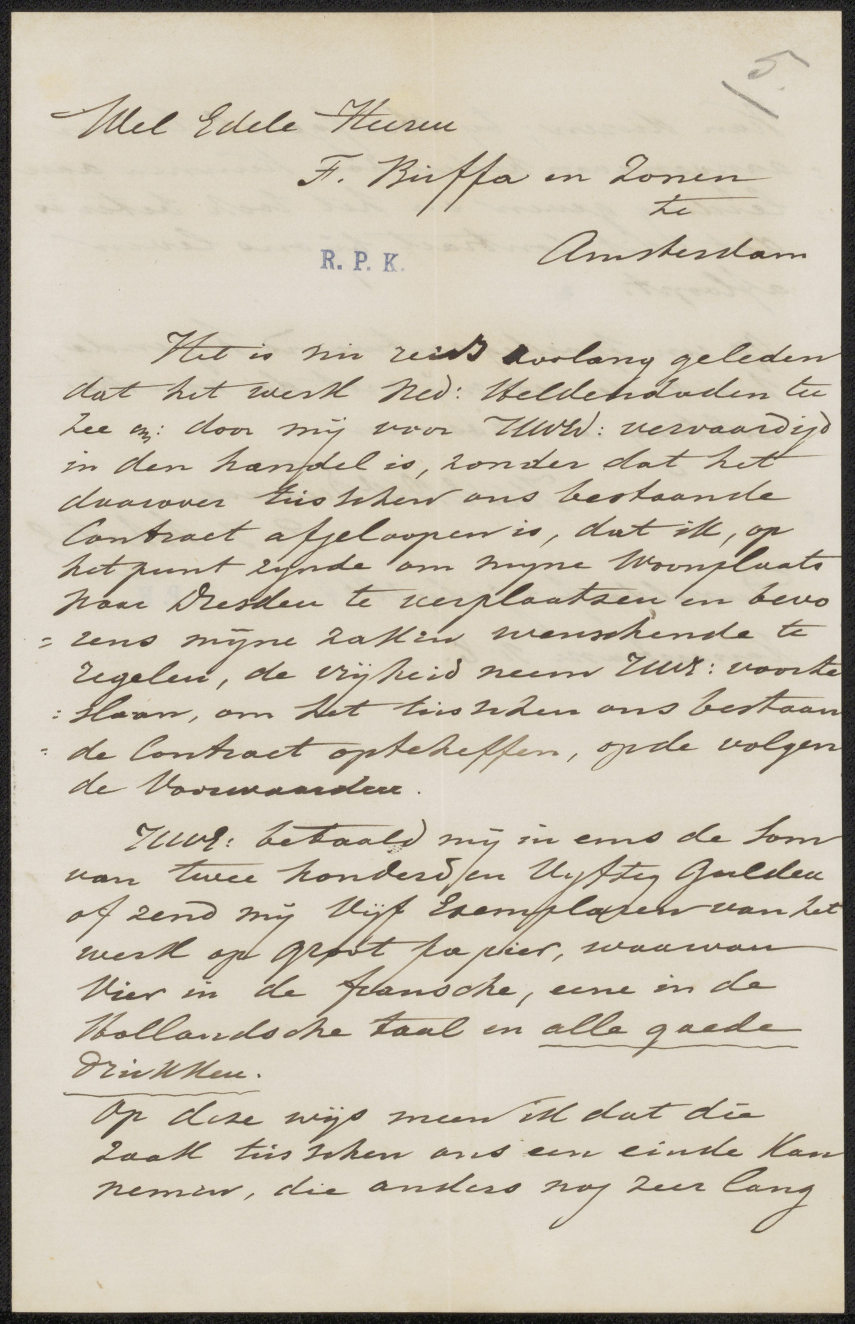 Brief aan Frans Buffa en Zonen