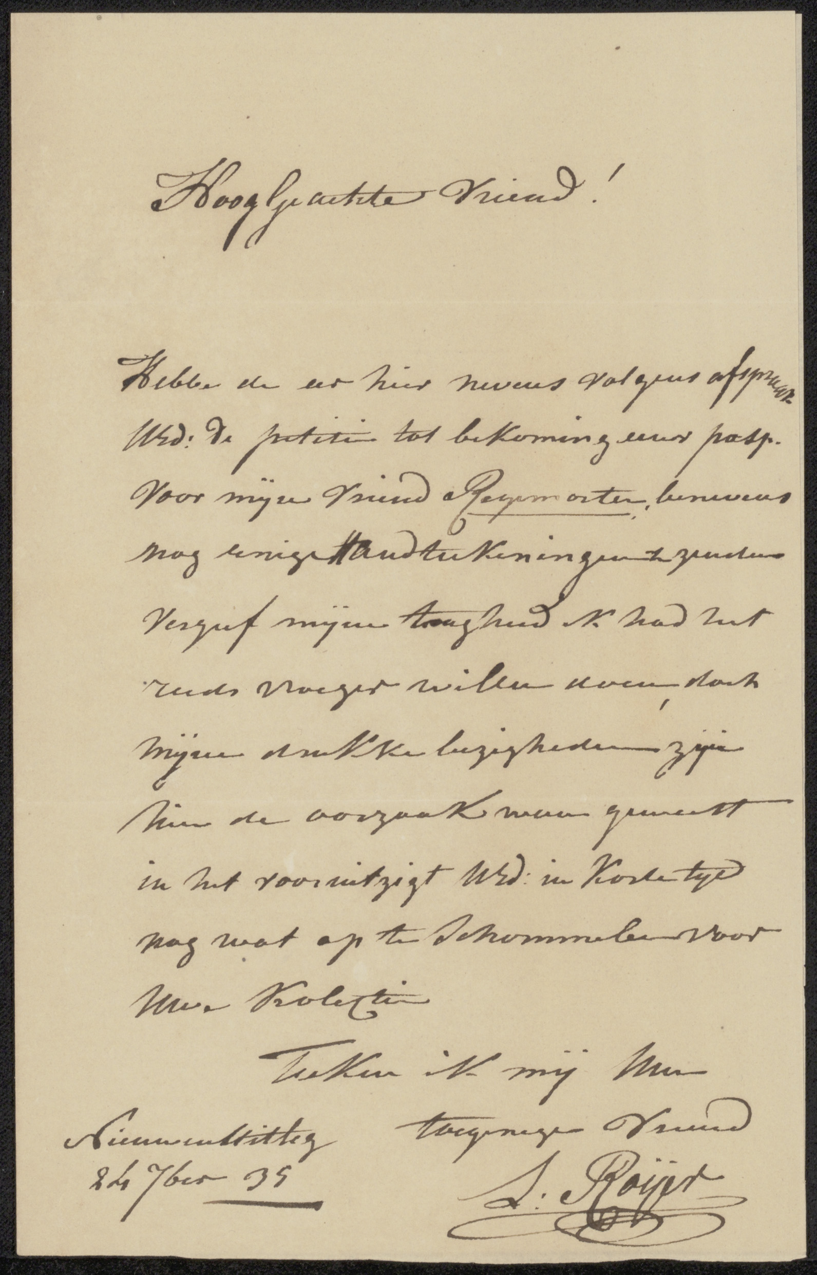 Brief aan Christiaan Immerzeel