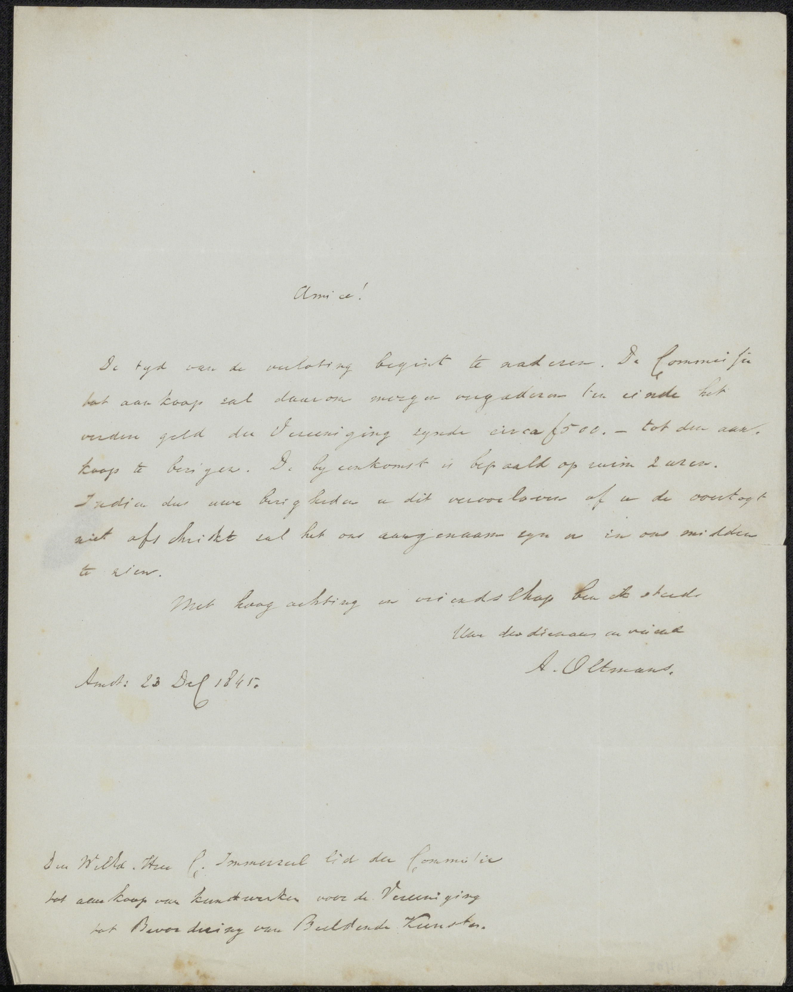 Brief aan de Comissie van Beheer van de Kunststichti...