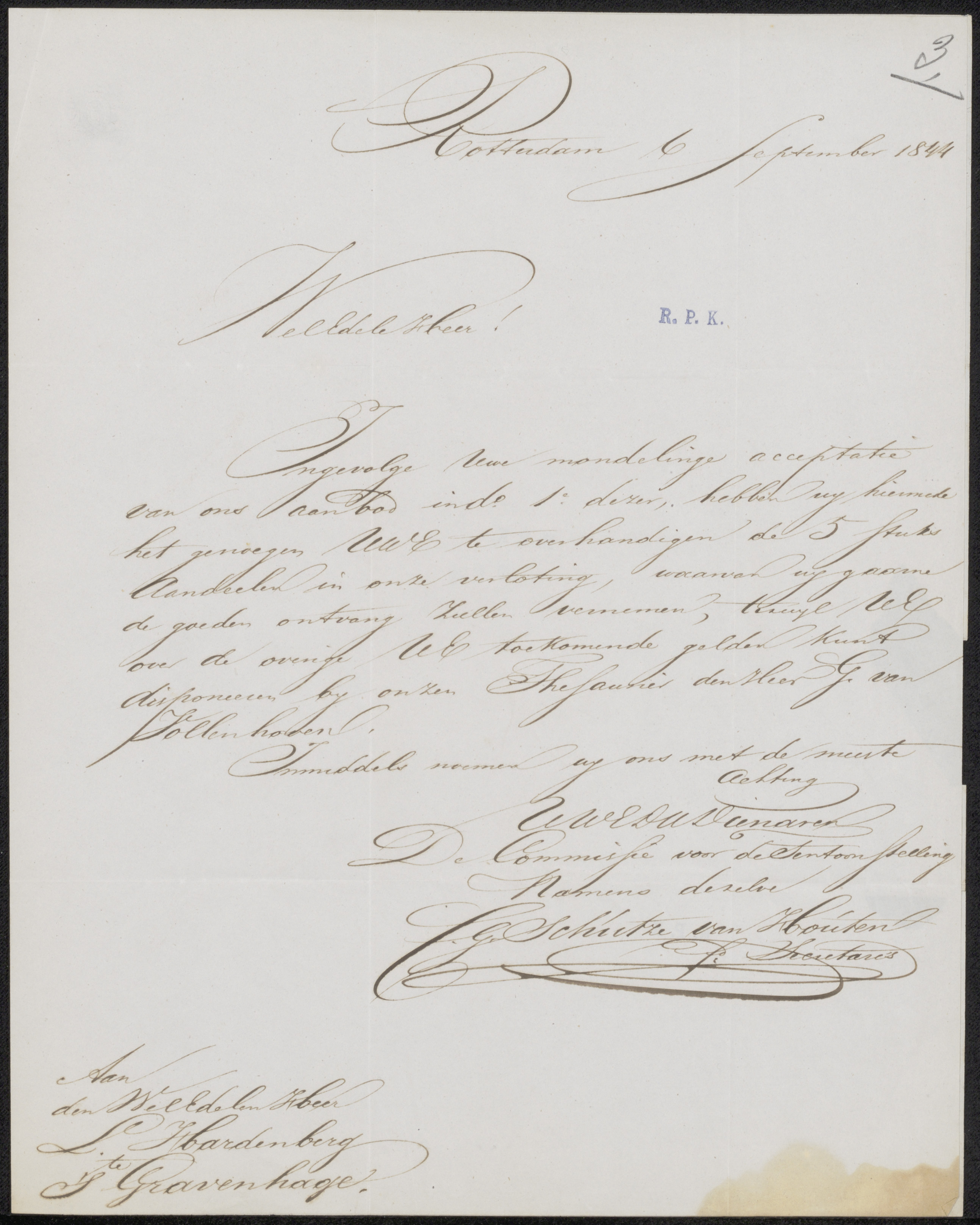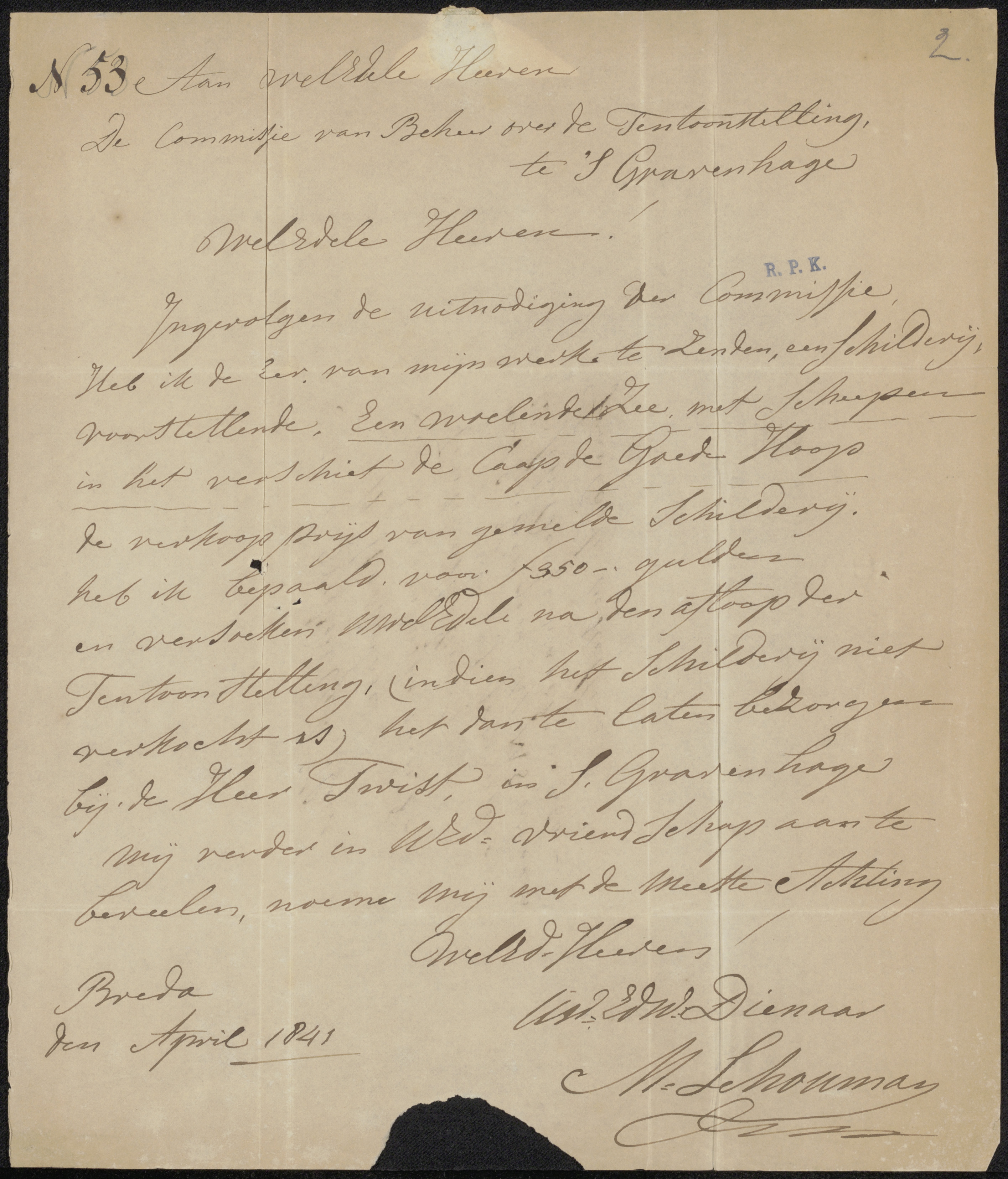 Brief aan de Commissie van de Tentoonstelling van Le...