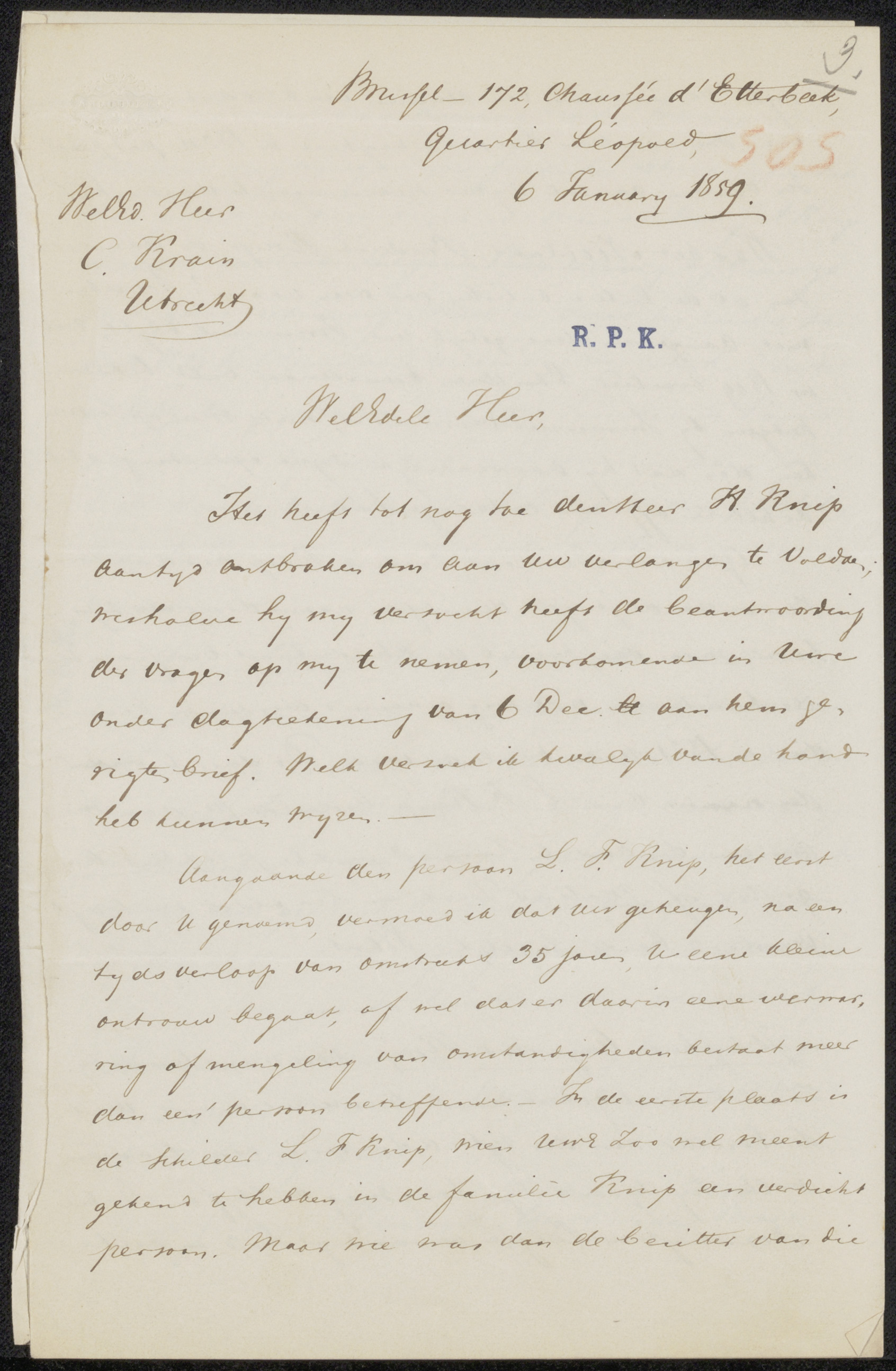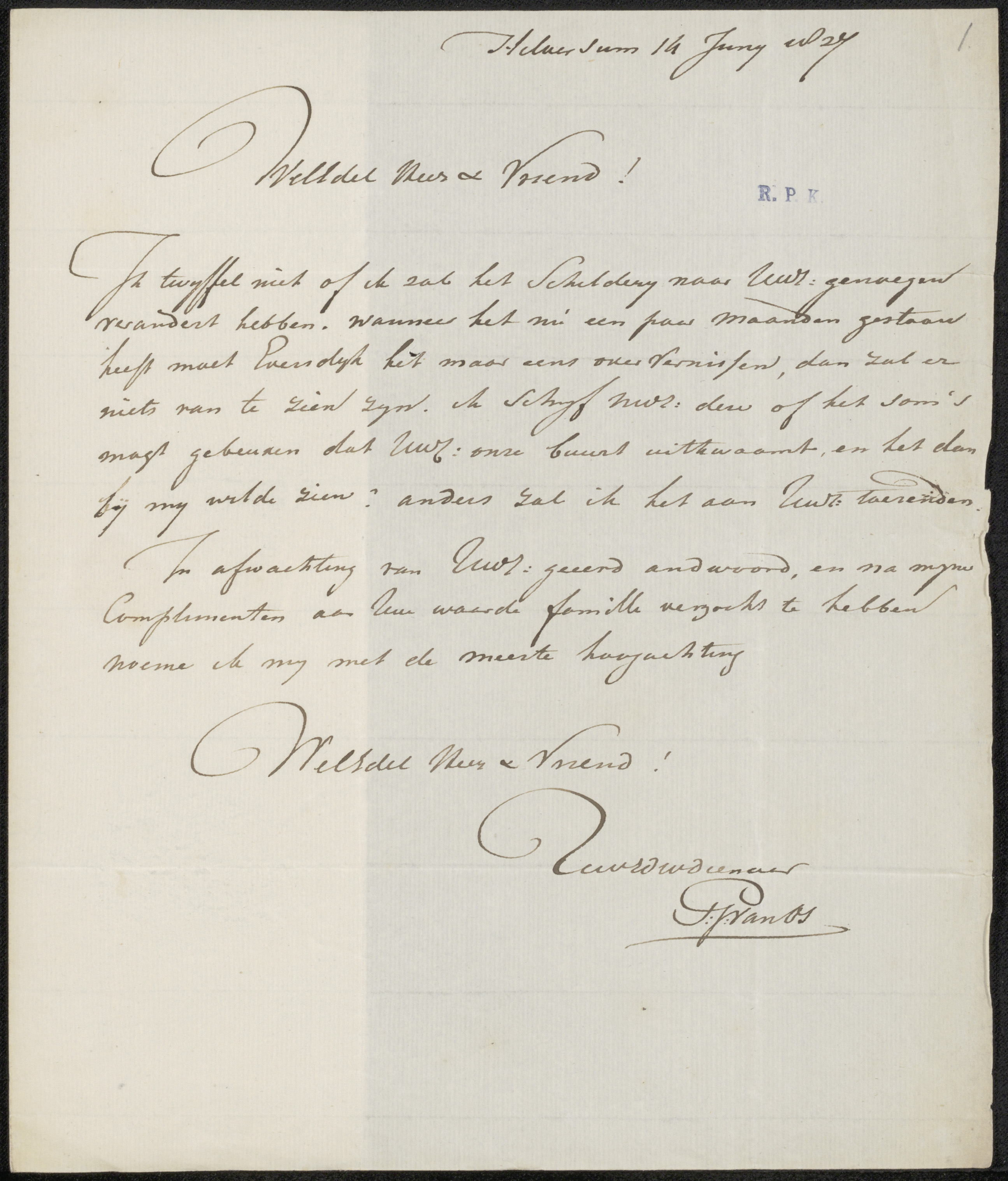 Brief aan Jan Weissenbruch