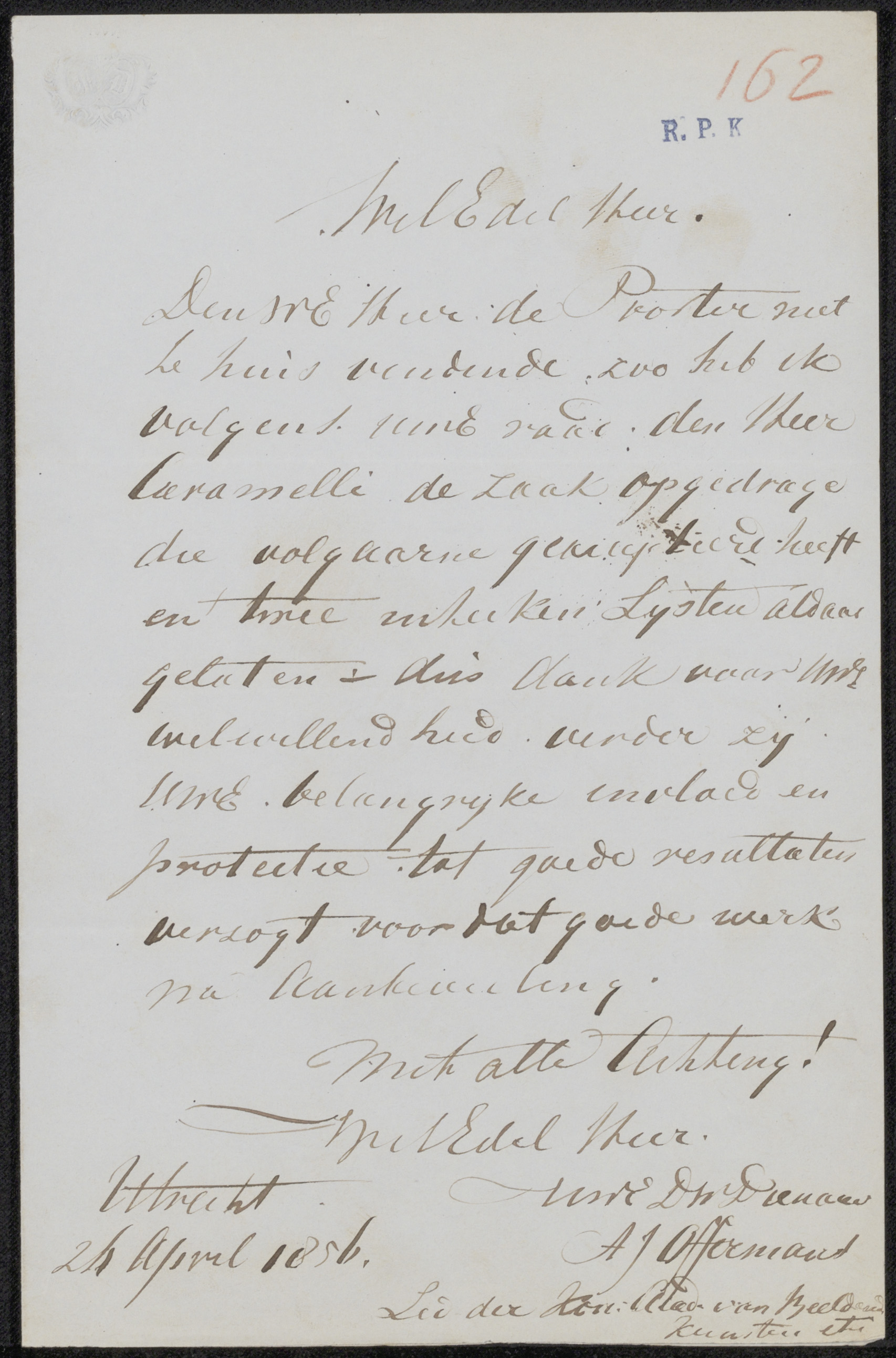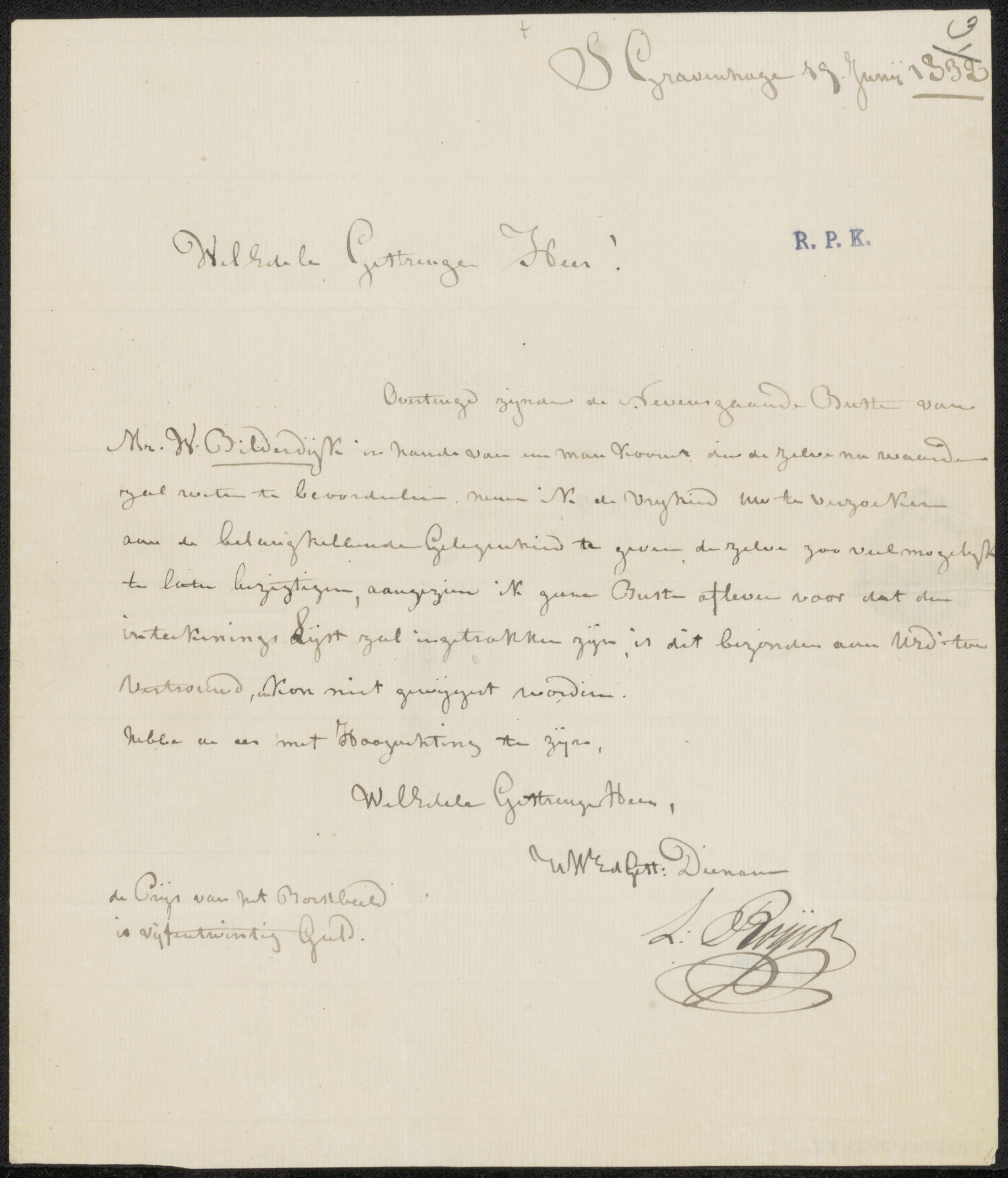 Brief aan Johannes Jacobus Franciscus Wap