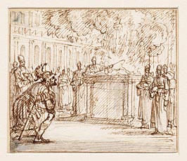 Abigaël biedt geknield een rijke voorraad aan David aan