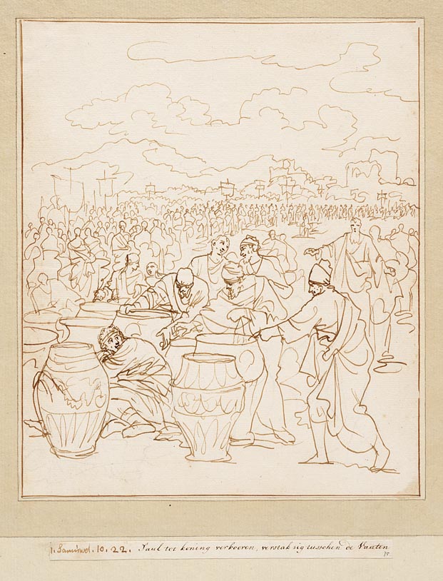Saul, verborgen tussen de watervaten, wordt gevonden