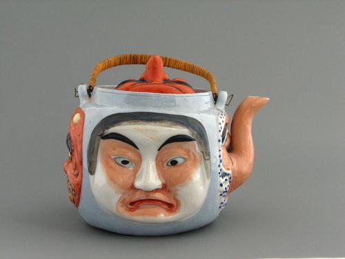 Japanse Banko Ware theepot van porselein met 5 gezic...