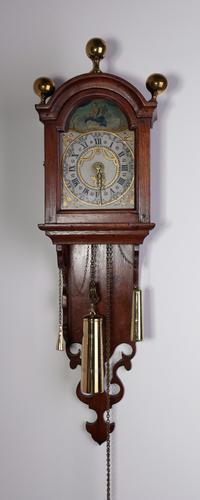 Staartklok met latoenkoper wijzerplaat en ornamenten...