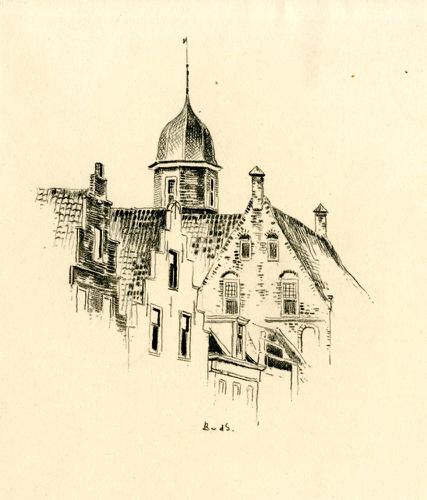Tekening met potlood van het torentje op het voormal...