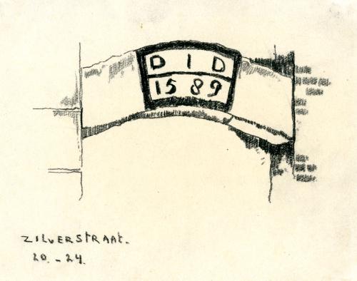 Tekening met potlood van een gevelsteen in de Zilver...