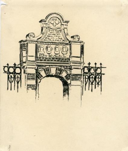 Tekening met potlood van de toegangspoort naar het W...