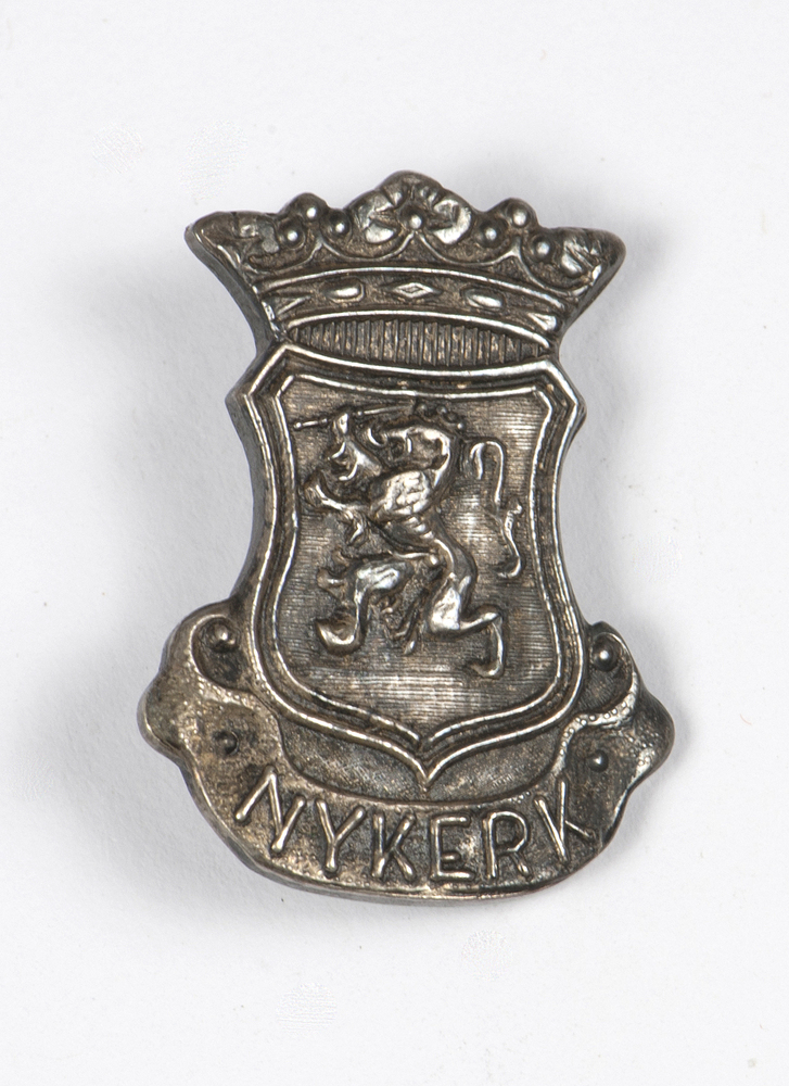 Zilveren speld met daarop het wapen van Nijkerk
