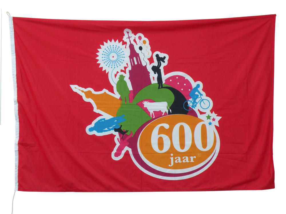 Vlag met daarop het logo van 'Nijkerk 600 jaar'