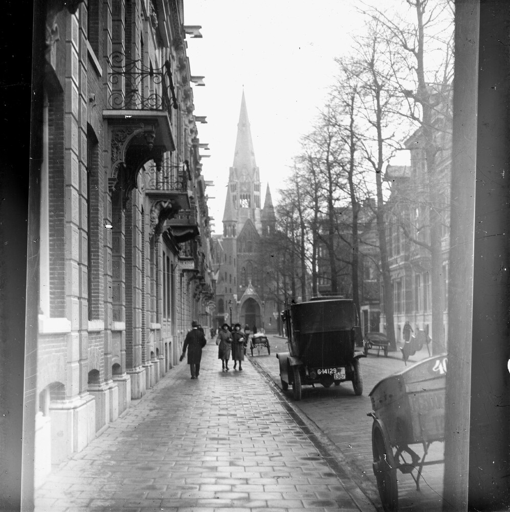 Foto van de Vondelstraat met Vondelkerk in Amsterdam