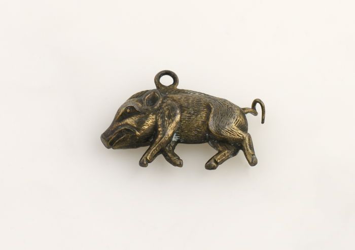 Gegoten zilveren dasspeld met stadsprofiel van Rotte...