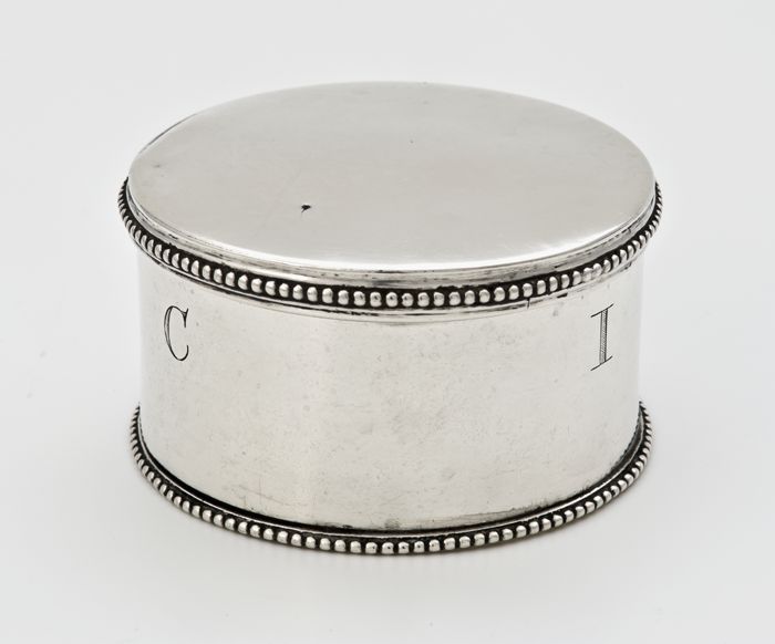 Zilveren bedieningsdoosje met deksel: pyxis met vakv...