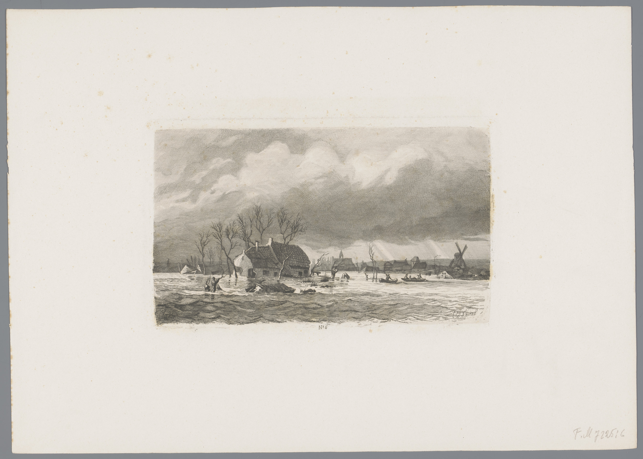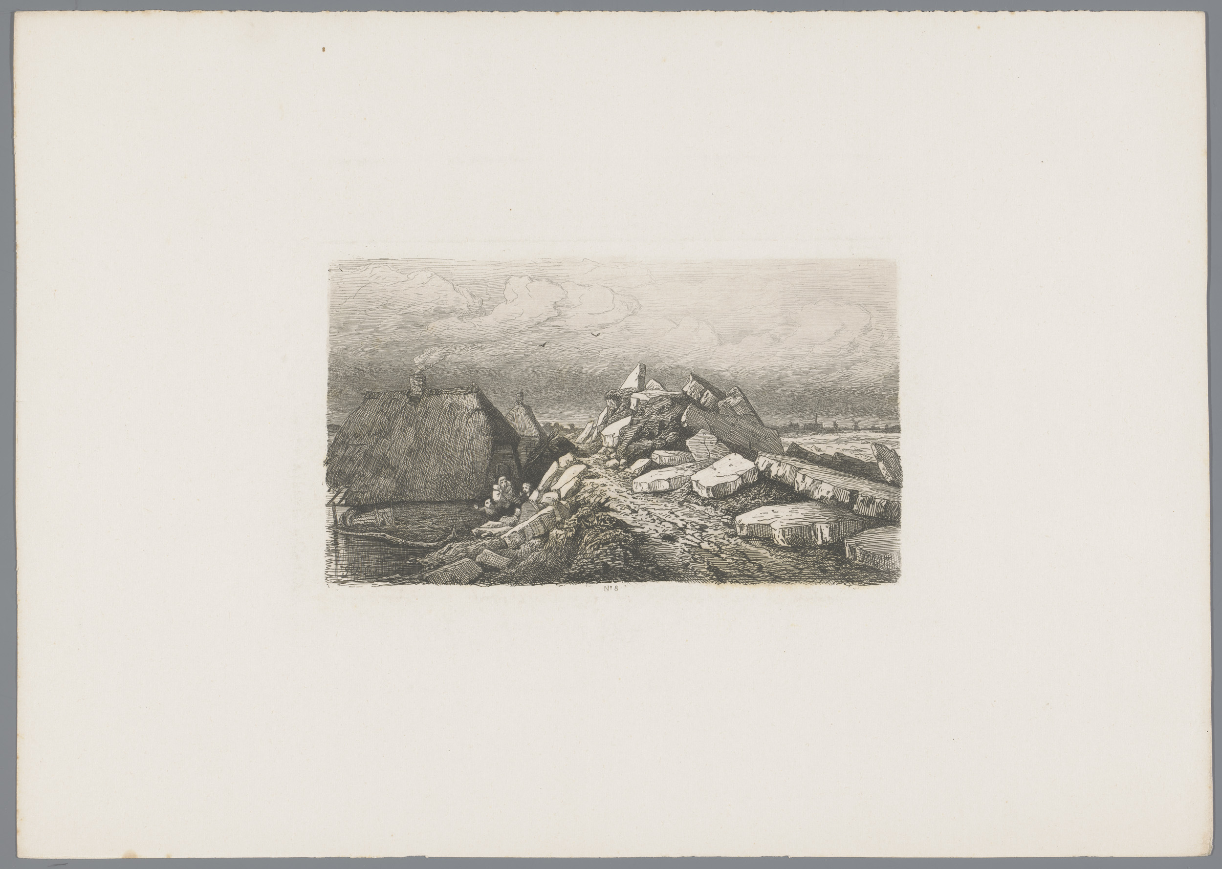 Kruiend ijs op de Rijn bij Arnhem, 1855