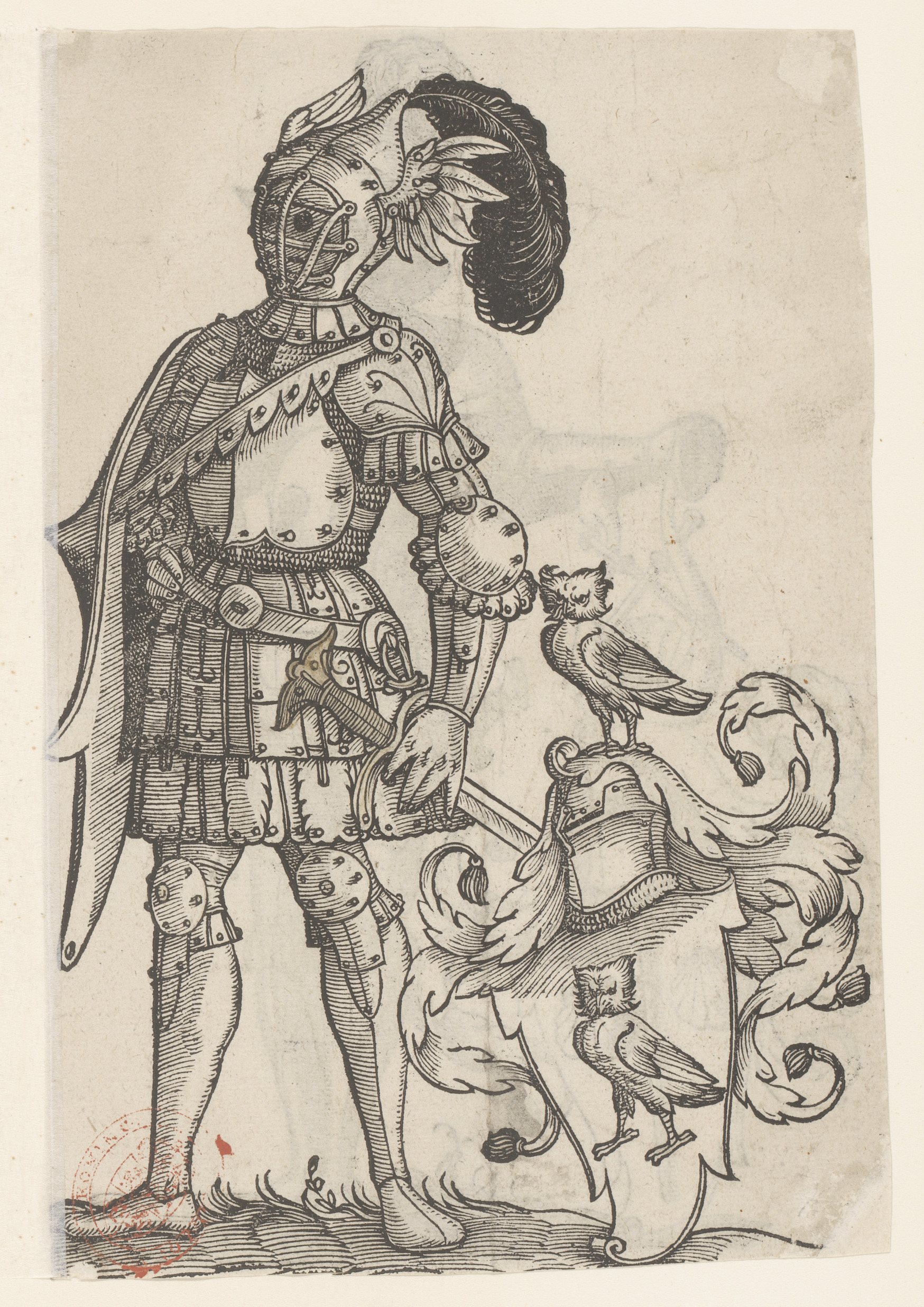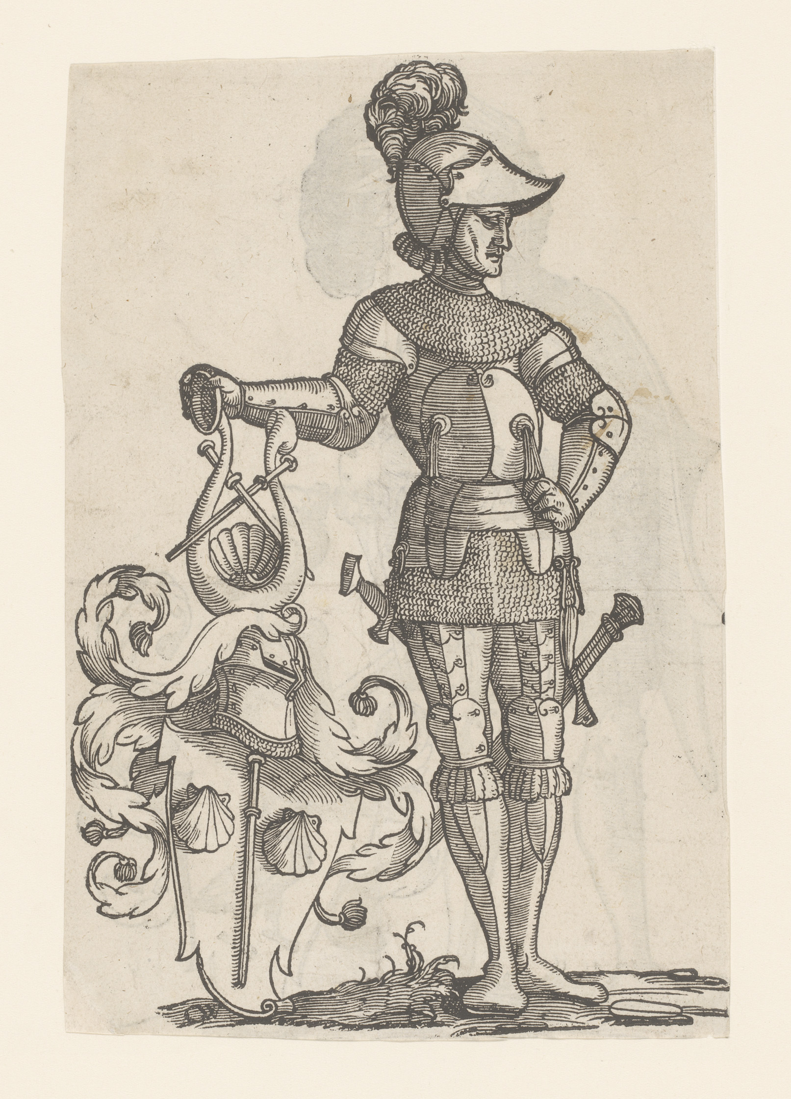 Ridder naast een wapenschild